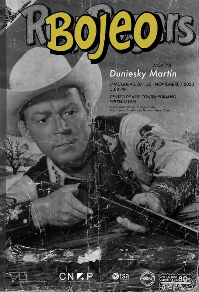 En los diarios (instalaciones “El diario que nunca existió” I y II) cuando se ojean, Martín reproduce la sensación del visitante que llega a los pueblos del oeste de los EEUU, en la época tantas veces presentadas en los Western. Donde el miedo a la diferencia marcó los discursos e imágenes de las películas con una señalada narrativa imperial. Carteles de películas que marcaron épocas como “El Llanero Solitario”, “Roy Rogers” y “Cisco Kid”, intervenidos a través del tallado del cristal protector, nos recuerdan la conquista de territorios y gentes por el “gran hombre blanco” y la mirada siempre triunfalista de la cinematografía hollywoodense.