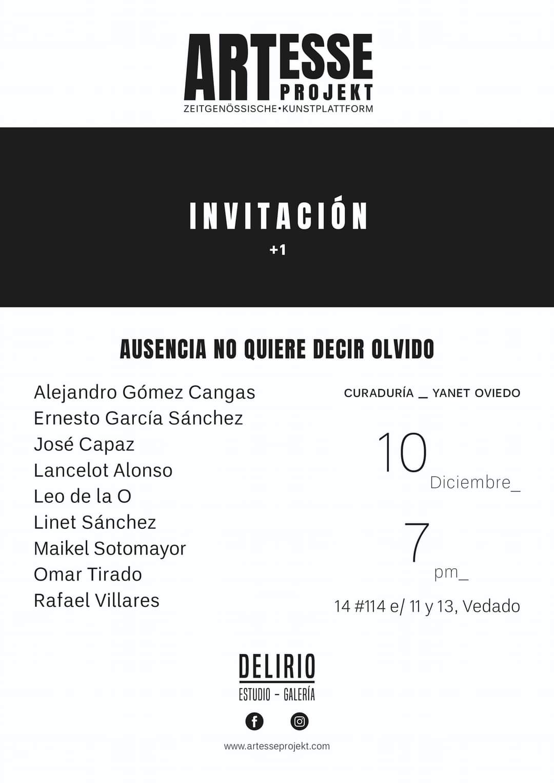 Esta es de esas exposiciones que relajan, que “muestran el músculo” como decimos en buen cubano, que retan. En la muestra Ausencia… estos artistas manifiestan, a través de sus obras, este complejo y tan interesante concepto, sus recursos son el silencio de los paisajes, habitaciones, locaciones y espacios vacíos que se descubren. Son la lucha con el paso del tiempo, con la muerte y sobre todo el “no olvido”. Son obras que hablan de la resistencia a desaparecer…