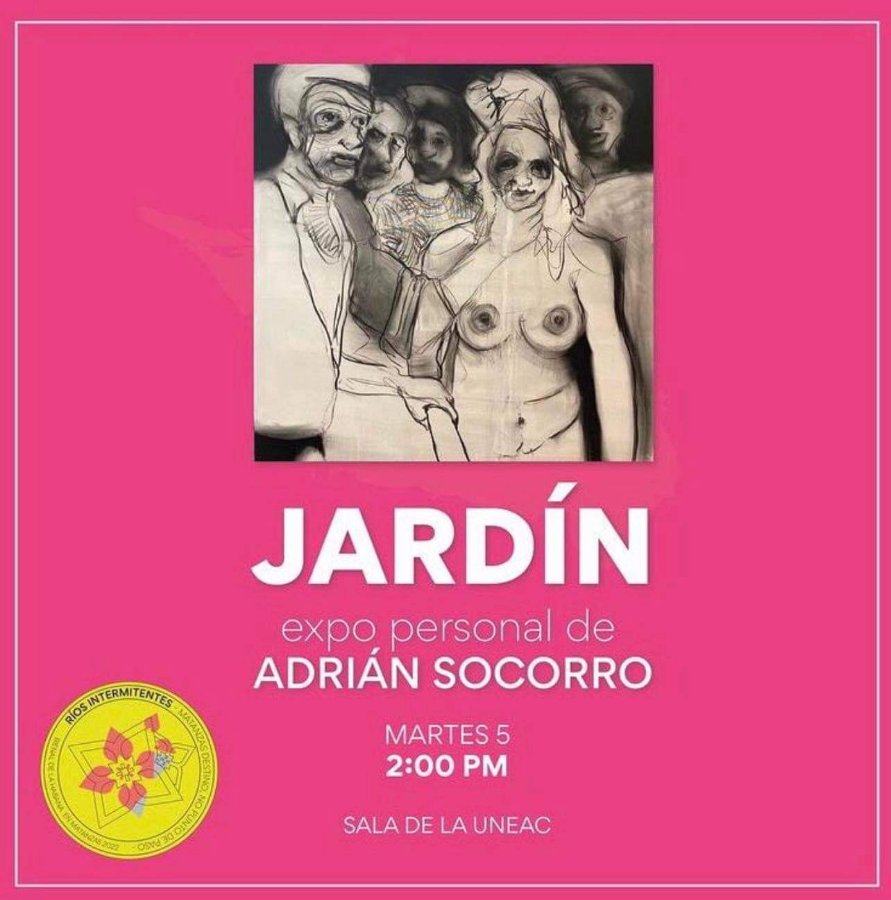 Las facilidades de las tecnologías me permiten estar virtualmente en esta exposición. La distancia geográfica y la imposibilidad de asistir a la etapa de Ríos Intermitentes de la 14 Bienal de la Habana, no impiden visitar algunas de las muestras más significativas. En esta ocasión son las obras que componen la exposición «Jardín» de Adrián Socorro. Evidentemente, este artista tiene el mérito de una producción insaciable de obras, pues recién a inicios de año presentó una muestra personal inmensa, y ahora participa nuevamente con piezas especialmente pensadas para la ocasión.