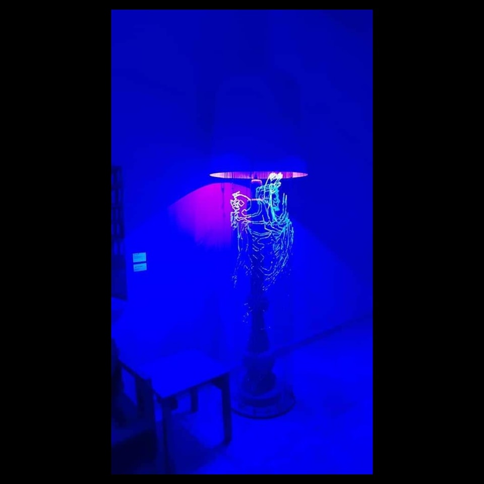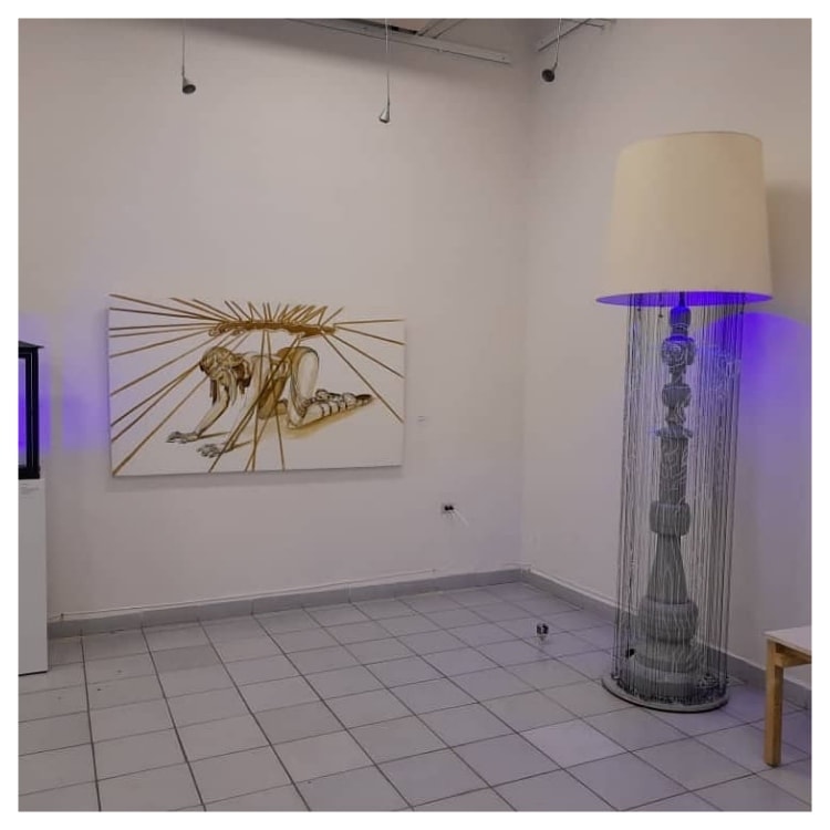 Otras piezas se ubican en un cierto patrón difícil de descifrar, son sus esculturas o como otros han querido señalar, dibujos convertidos en una especie de holograma que van adquiriendo una tridimensionalidad gracias a luces y la conexión de hilos. Lámparas, candiles, son los soportes que esconden figuras como la palma real, diamantes, otras mujeres que recalco, dan la medida del nivel de detalle y desarrollo que ha logrado Del Dago en estos años.