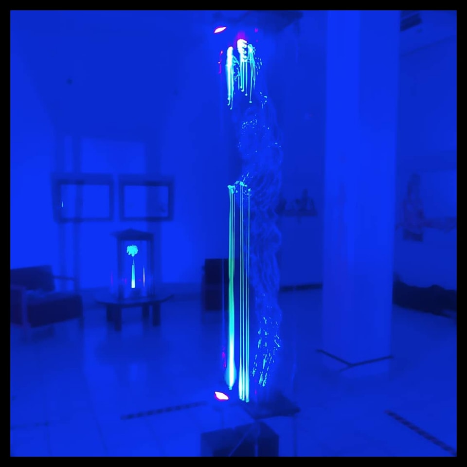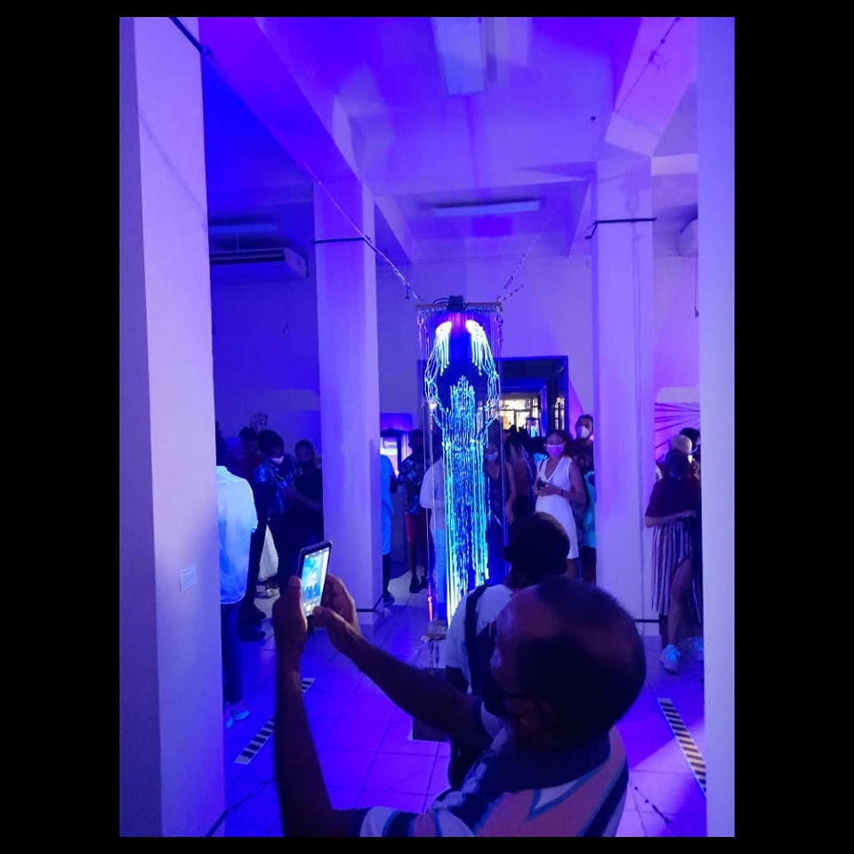 Me quedo entonces con la fina ironía de Duvier al asociar esta exposición, su museografía con el título. Ahí donde, el espectador se descubre bajo la mirada de una mujer imponente como es la figura centro, cuya sensualidad es finamente descrita a través de signos marcados en la pieza y resaltados con el uso de resinas que responden a la luz ultravioleta, está ese sentimiento del autocontrol de los sujetos debido a la presencia de vigilancia de sus actos. En una época donde, según Foucault, “todas las instituciones actuales tienen de una forma u otra este tipo de organización de vigilancia, donde no es necesario que sea llevado a cabo físicamente, e incluso sin que se lleve a cabo una vigilancia real en algún momento, el hecho de sabernos o creernos vigilados y evaluados va a modificar nuestro comportamiento en los diferentes entornos”, esta exposición sirve para demostrar la libertad de expresar el arte.
