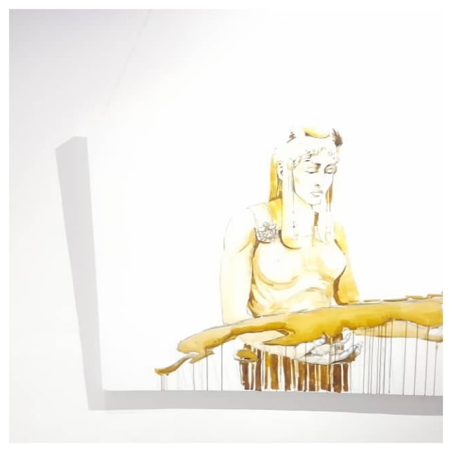 Tomo como punto de partida para disfrutar esta muestra, desde la distancia, las palabras de la especialista Sandra García: “Duvier comenta e ironiza sobre su contexto, por momentos roza lo clandestino de una opinión no oficial, protagoniza la historia para contárnosla. El cuerpo femenino, como significante asociado a Cuba, ha sido una constante en la obra de este artista, que ahora retoma la alegoría y, a partir de una revisión del ícono, genera nuevas narraciones, cuál capítulo de la historia actual de su país”. Estas palabras responden a “La Historia es de quien la cuenta” del propio artista Duvier del Dago, en la Galería Artis 718 en 2016. Casi 6 años después, la galería santiaguera René Valdés le brinda un espacio a la obra de este artista, quien agradece con una exposición de alto nivel estético y visual. Parto de esta cita, pues nuevamente es la figura femenina alegórica a Cuba, la que tiene el protagonismo.