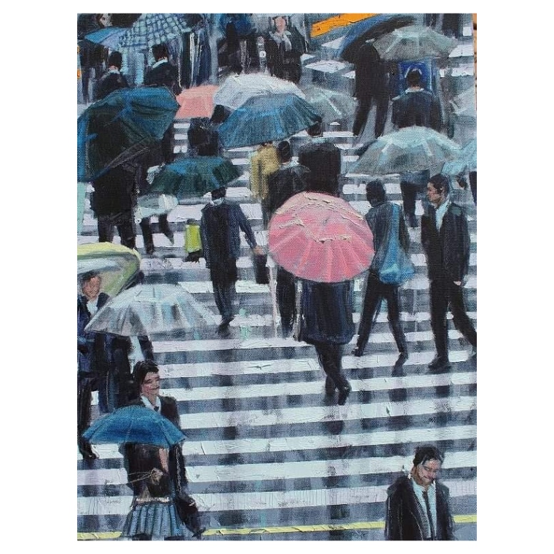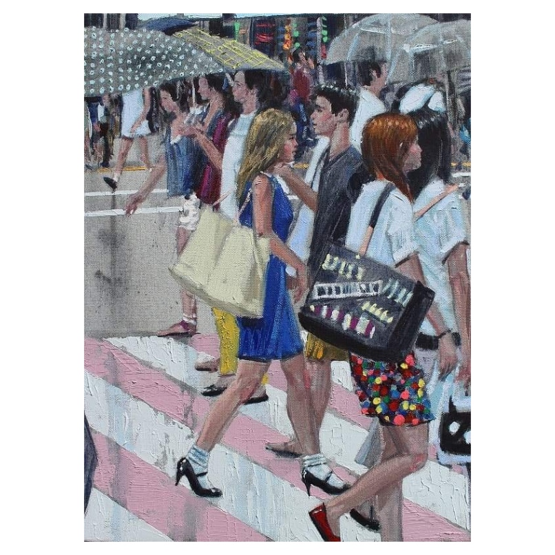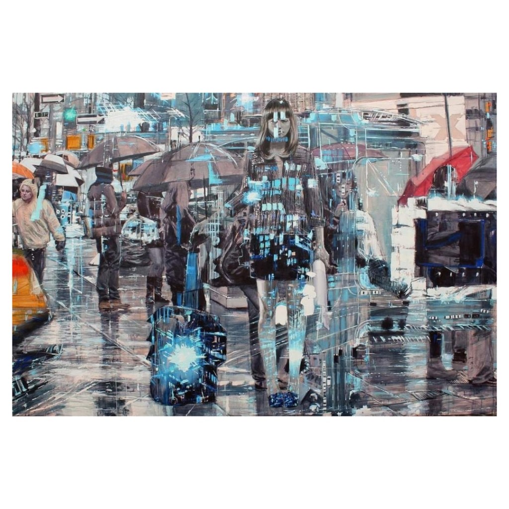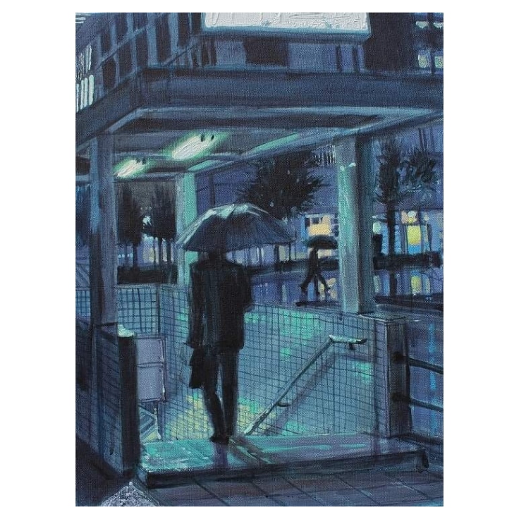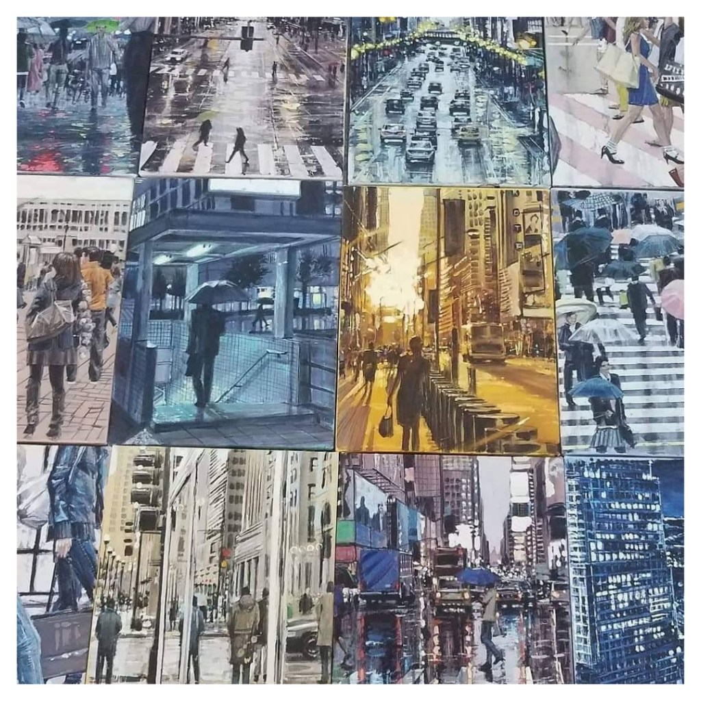 Pinturas donde la temática citadina es recurrente, pone en primer plano a la figura femenina, ajenas a esa ciudad caótica y conglomerada, William Acosta emplea colores pasteles en acrílico sobre lienzo. En Autómata se visualizan disímiles tonalidades de colores para expresar su percepción de los ambientes urbanos.