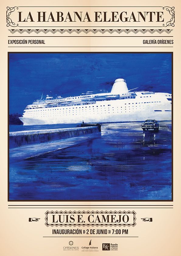 En contraposición, Camejo – pintor y dibujante que ya nos acostumbra a regalarnos La Habana, o mejor dicho su Habana- escoge varios lienzos donde se ve una ciudad cambiada, asaltada por el siglo XX y casi el XXI. Por sus calles ya no están los coches lujosos de una ciudad naciente, esta vez luce esos espíritus (almendrones) errantes que aún la circulan como testigos ruidosos de esa época. Cruceros anclados en la bahía desafían el recuerdo de los Ferrys ancianos que desde costas cercanas traían a la ciudad a los vecinos ansiosos de disfrutar bares y cantinas, música y gente. Tal y como se recogían esas estampas en las páginas de aquella revista de farándula, una de las publicaciones literarias más importantes de Cuba y portavoz del modernismo hispanoamericano.