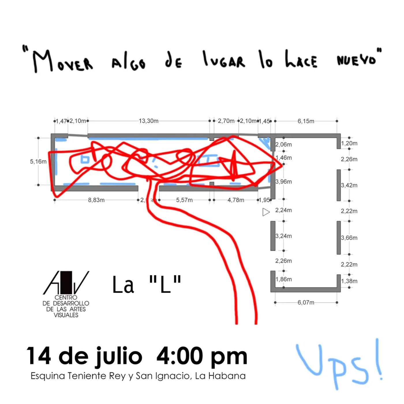 Ups!… lo siento, pero los que creyeron encontrar una exposición común, no la encontrarán aquí. Marlon Riveron y Hector Onel Guevara Delgado , ahora combinados en un colectivo de creación artística, llevan al límite la metodología de presentación de una tesis de graduación. Imagino la complejidad de evaluar, o tal vez no, lo aprendido y creado a lo largo de cinco años de estudios en el ISA por estos jóvenes artistas. En dinámica síntesis muestran en la sala L del Centro de Desarrollo de las Artes Visuales un performance que juega con el criterio de la teatralidad, donde los espectadores se convierten en participantes y a su vez la presencia física de los artistas se desvanece.
