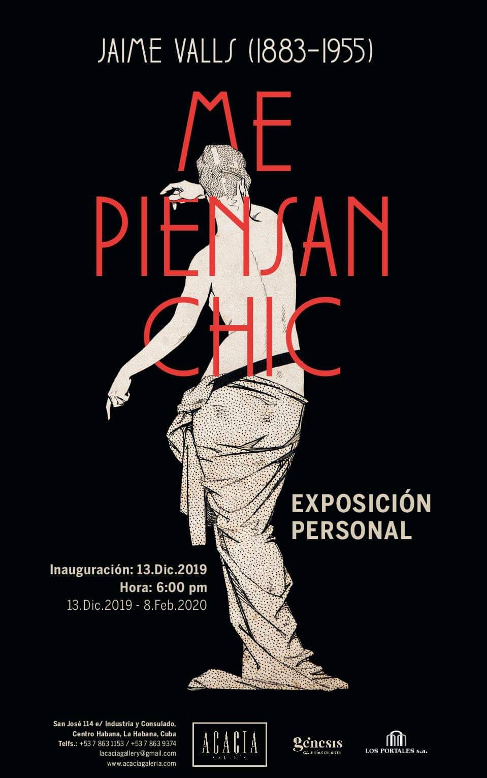«El mes de diciembre del año 2019 la galería Acacia tuvo la oportunidad de contar con una muestra expositiva que sorprendió sobre todo por el artista que presentaba. Me piensan Chic, sacó a la luz la obra de un creador para algunos desconocidos, no obstante, deslumbró a todos los que pudimos disfrutar de ella con un resultado superior al esperado. El encargado de la muestra: el caricaturista, ilustrador y dibujante Jaime Valls. La primera «gran exposición» que deja ver al público desde obras promocionales, dibujos, autorretratos e incluso muebles de estilo Art Decó diseñados por el propio artista y que aún permanecían en su casa en la Loma del Chaple, en La Víbora.