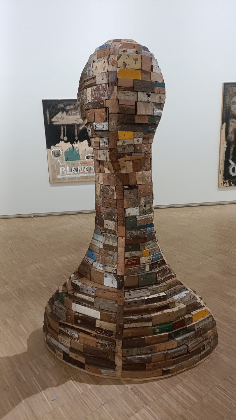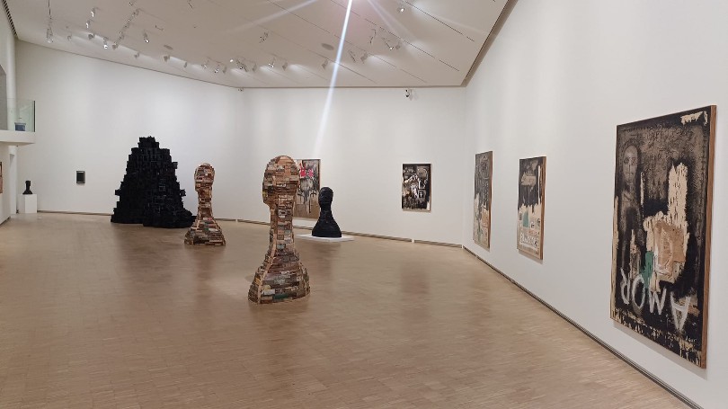 Recorrer virtualmente las salas de la exposición nos permite, por lo menos a los de acá, conectar con esa capacidad como artista de hablar sobre temas álgidos de manera valiente, remarcando el mensaje con esos materiales y técnicas particulares. Diago utiliza una variedad de técnicas y materiales, como el collage, la pintura y la instalación, para crear piezas que son tanto visualmente impactantes como conceptualmente significativas. Sus obras a menudo incorporan elementos encontrados, como trozos de metal oxidado, que evocan la historia y la identidad del negro de una manera cruda y poderosa.