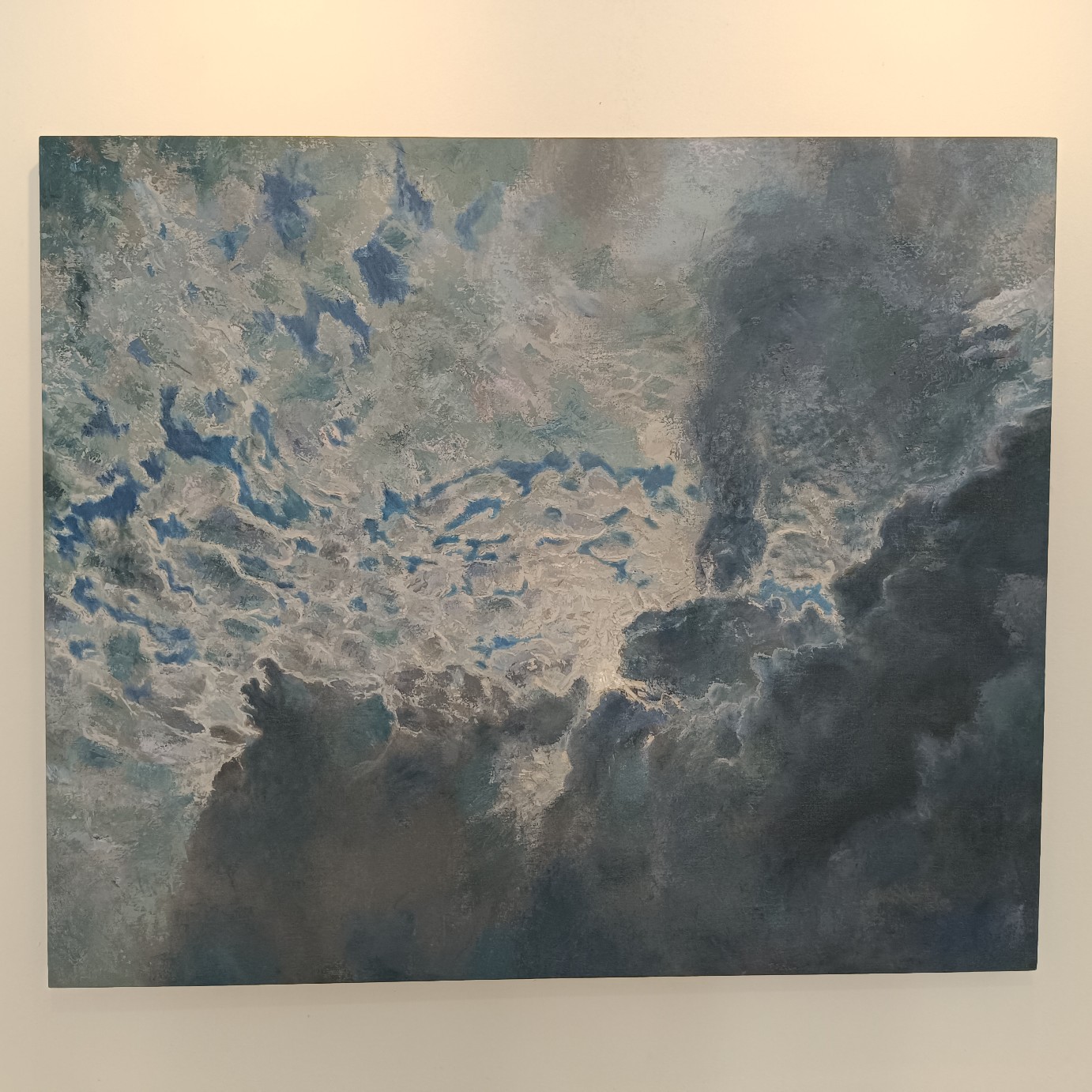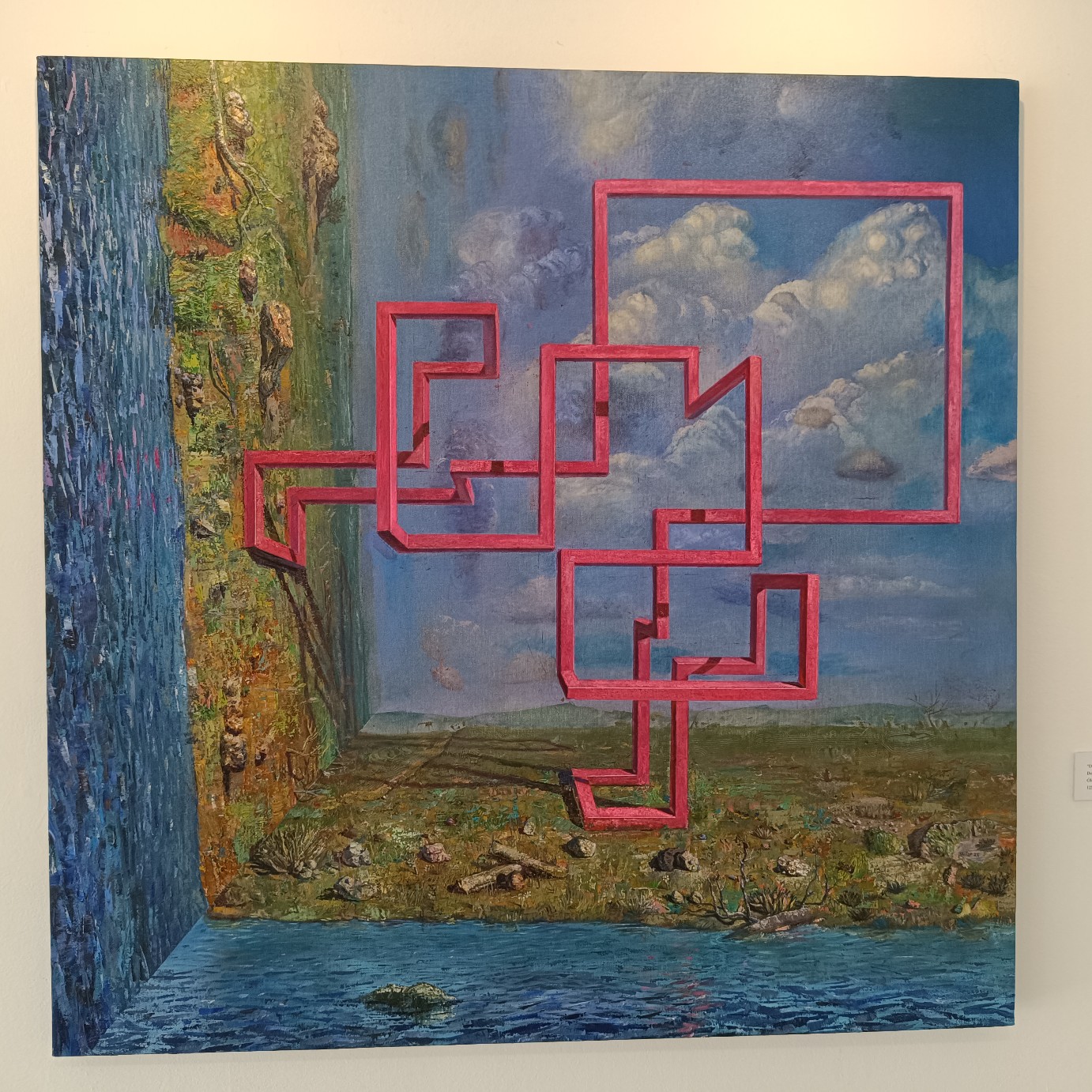 En lo particular, hubiera privilegiado en la museografía las piezas que responden al título de la muestra. Estas, ubicadas en la segunda sala de la galería Galiano, compiten con un recorrido previo a la entrada de la galería por las últimas series trabajadas por el artista. Ahí predominan los paisajes surrealistas con objetos anacrónicos y vistas de nubes desde la mirada de un ave o en un avión. Estas representaciones, llenas de contrastes y en constante tensión, exploran los límites entre lo real y lo imaginario, invitando al espectador a reflexionar sobre la relación del ser humano con su entorno y las fronteras que lo separan de lo desconocido. Pero que en nada contribuyen al sentido de la segunda sala.