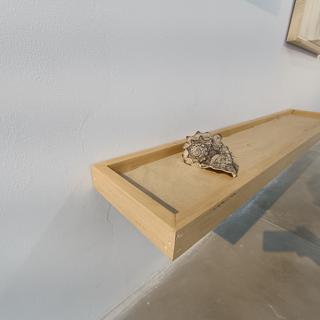 En dos instalaciones u objetos intervenidos, sería difícil ubicar su definición, Sergio ha realizado una intervención fascinante en dos caracolas marinas utilizando dibujos al carboncillo. Ambas piezas son un ejemplo maravilloso de cómo el arte puede combinar objetos naturales y técnicas tradicionales para crear algo completamente nuevo y cautivador. La caracola en sí misma, una especie de la familia de los cónidos, tiene una forma espiralada y elegante, con una serie de cámaras internas que se vuelven progresivamente más pequeñas en dirección al ápice. Esta forma natural ya es visualmente interesante, pero la intervención de Marrero con dibujos al carboncillo eleva el objeto a una obra de arte. Estos elementos se entrelazan de manera orgánica, siguiendo las curvas y contornos de la caracola, lo que acentúa su forma natural y produce una sensación de armonía entre el objeto y las ilustraciones.