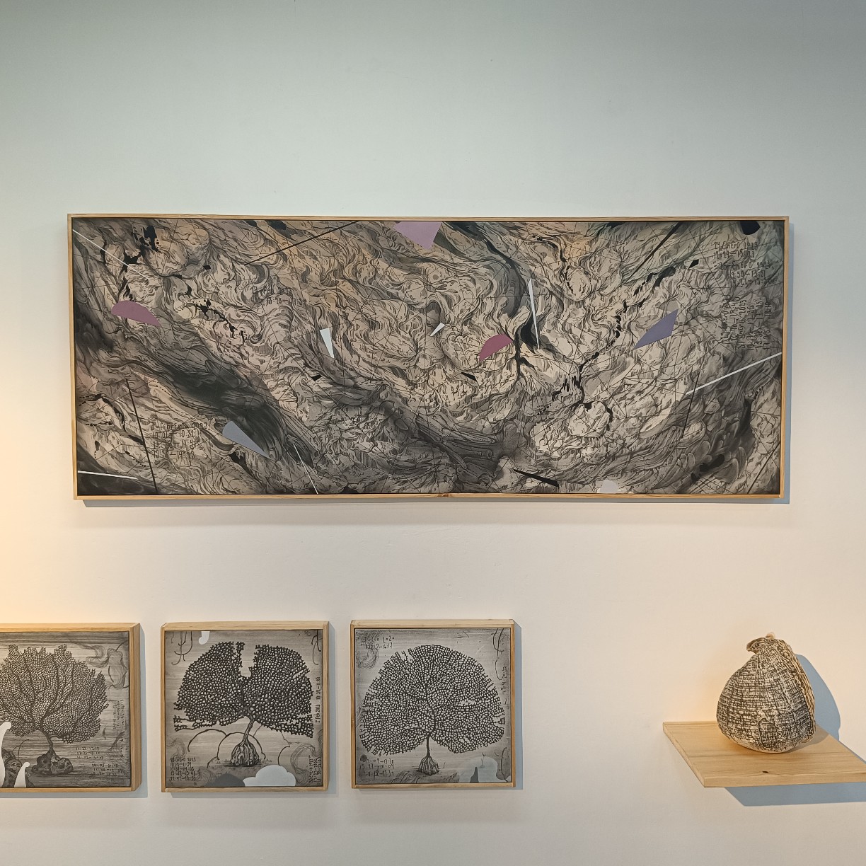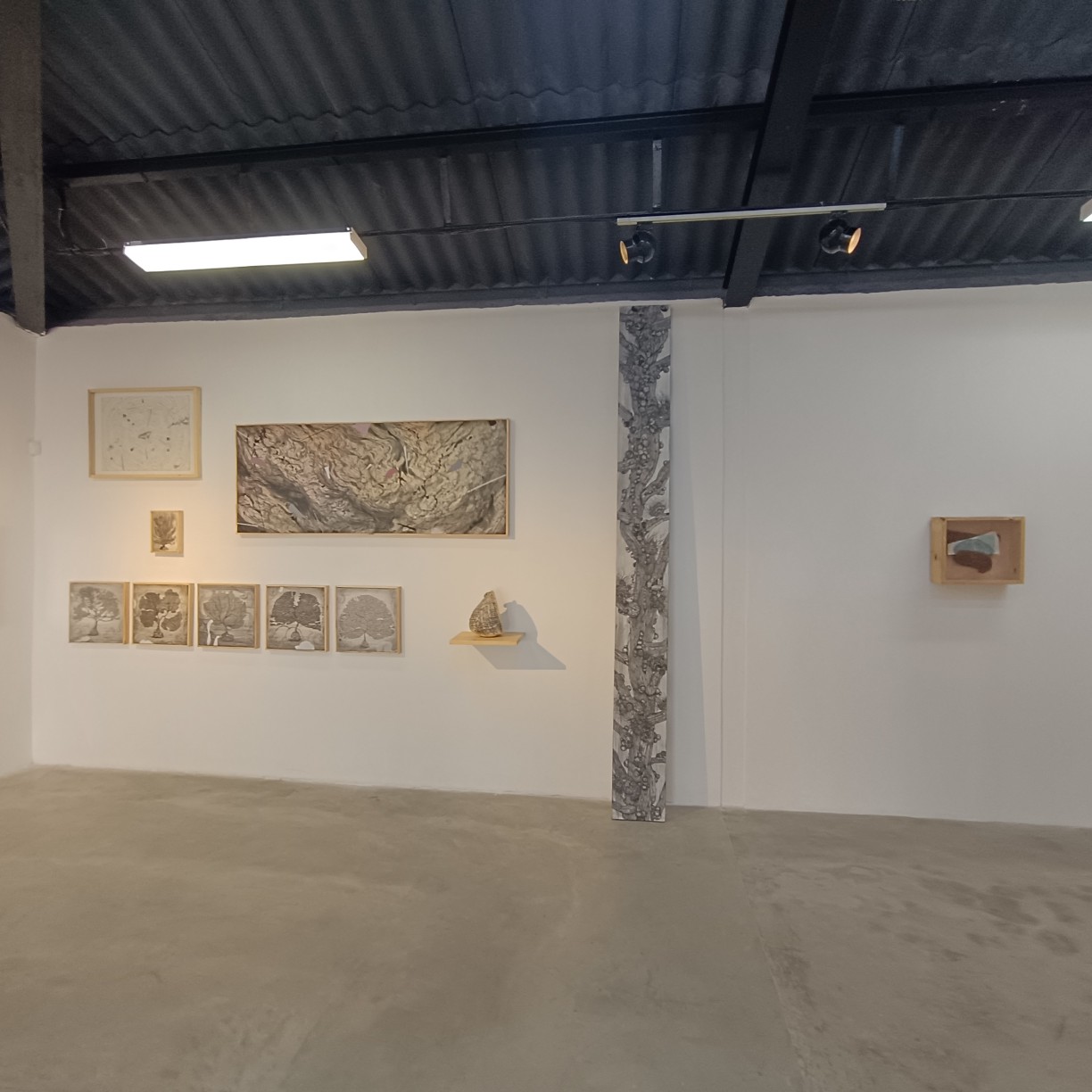 La exposición «Una mariposa en la niebla» nos sumerge en un fascinante viaje a través del tiempo del artista y el espacio mediante paisajes marinos ejecutados magistralmente en carboncillo. La muestra, destaca la habilidad del artista para explorar y representar la interrelación entre el tiempo y el espacio en sus dibujos, empleando el concepto de cronotopo como ya he descrito. A diferencia de obras vistas anteriormente, la presente exposición presenta obras que abordan el tema de los paisajes de fondos marinos de una manera casi científica y documental por el nivel de detalles, al mismo tiempo que mantiene un estilo artístico y expresivo en su trabajo.