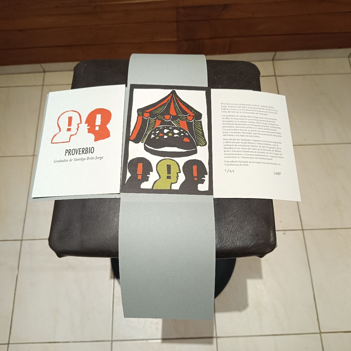 La exhibición de los libros-caja revela un juego entre lo visible y lo oculto, la contención y el descubrimiento. Muchos de estos objetos encierran tesoros, reliquias de la vida cotidiana y la historia cubana, creando narraciones tangibles que los espectadores pueden explorar. Las cajas sugieren secretos por descubrir, ofreciendo al espectador una sensación de participación en el descubrimiento de las historias que contienen. En esto, la maestría de Yamilys Brito se hace evidente en su pieza «Proverbios», realizada con la técnica de xilografía.