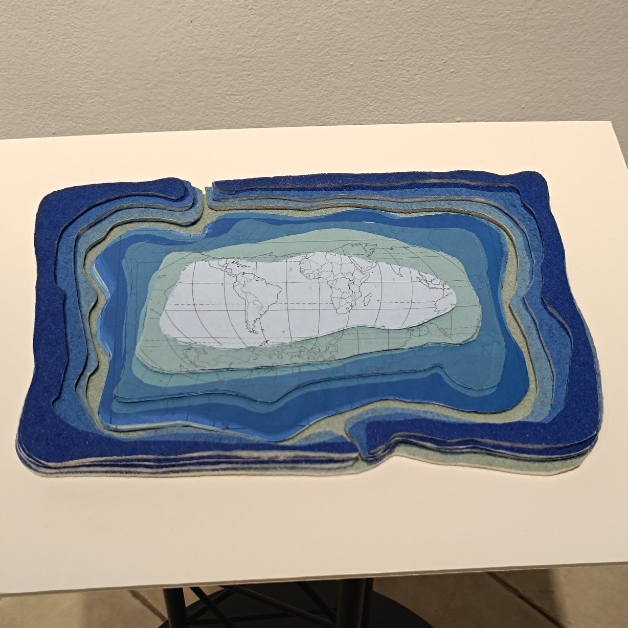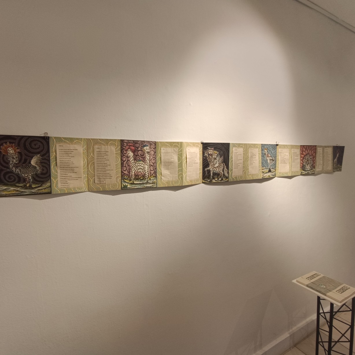 La exposición logra abrir un diálogo fresco y revitalizante sobre el uso evolutivo y revolucionario del libro como objeto de arte y medio de expresión gráfica. Lo primero que llama la atención es la presencia de los libros intervenidos de Anyelmaidelín Calzadilla. Ella aborda esta tipología del libro-arte con un desenfreno y audacia fascinantes, aportando nuevos contextos a las imágenes —mapas— y a la materialidad ya existente. Se observa una profunda crítica a las estructuras sociales y políticas actuales, pero también una belleza y un misterio que se manifiestan en la recontextualización del contenido original. Esta estrategia artística genera reflexiones en el público, enfatizando la fuerza de la imagen y su poder para ser transformada y reinterpretada.