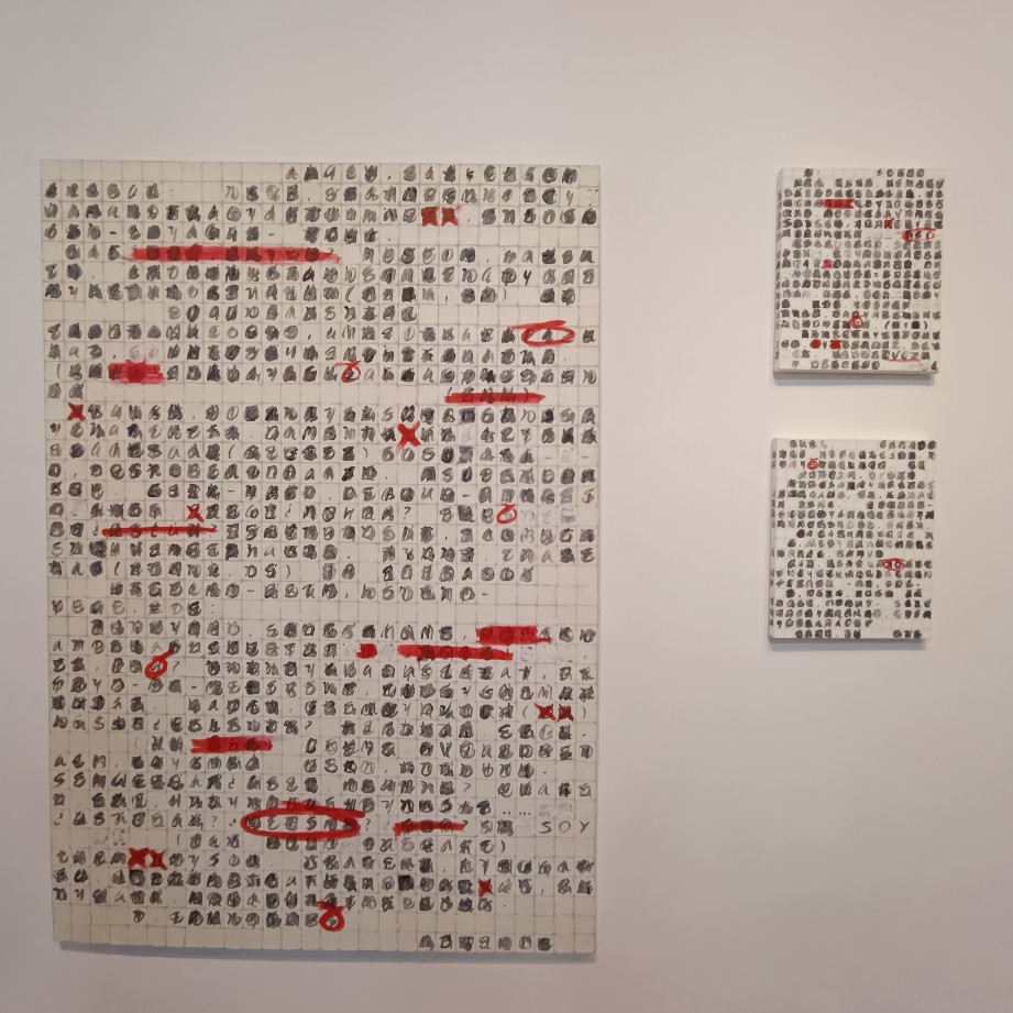 El Aleph, por ejemplo, es un símbolo de la totalidad del universo, donde todos los puntos coinciden y se reflejan simultáneamente. Mientras que la Torre de Babel es un símbolo del deseo humano de alcanzar los cielos y de la posterior confusión de lenguas que llevó a la diversidad lingüística. Aunque estos conceptos son fascinantes y pueden aportar profundidad a la interpretación de la exposición, su vinculación directa con las obras individuales puede no ser evidente para el espectador. Aunque estas referencias a criterio de las curadoras pueden enriquecer la propuesta curatorial, en este caso en opinión de este espectador, pueden resultar en una desconexión, pues no se logra anclarlas firmemente en el contenido visual y conceptual de la exposición. Para que estos símbolos poderosos sean efectivos, deben resonar de manera orgánica con las obras presentadas. De lo contrario, pueden parecer meras adiciones retóricas que buscan aumentar la densidad conceptual, pero que no se ven respaldadas por la materialización en la curaduría.