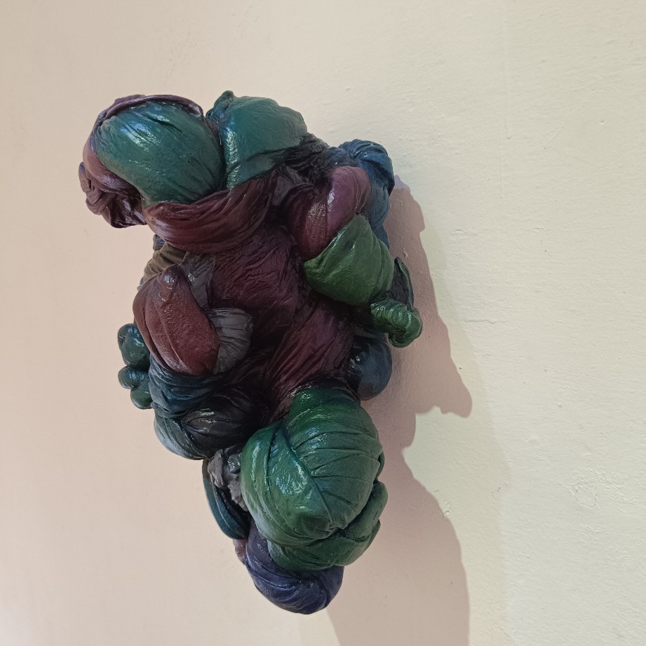 La muestra “Hueco en la escafandra” del joven escultor Yeinier Núñez López, nos sumerge en un espacio de meditación sobre la muerte y la vida, dos extremos inseparables de la existencia humana. Con claras influencias de la maestría de Villa Soberón, el artista emergente de esta exposición se revela como un poeta de la resina de poliéster y la fibra de vidrio, materiales que a través de sus manos consiguen capturar momentos efímeros y eternos a la vez. Las esculturas, en su mayoría abstractas, proponen una narrativa intangible que fluye como un río de imágenes revividas. Aquellas que aluden a la lluvia y los abrazos evocan una sensación de reconexión con nuestras raíces más profundas, y de alguna manera, la transformación de lo mundano en algo trascendental.