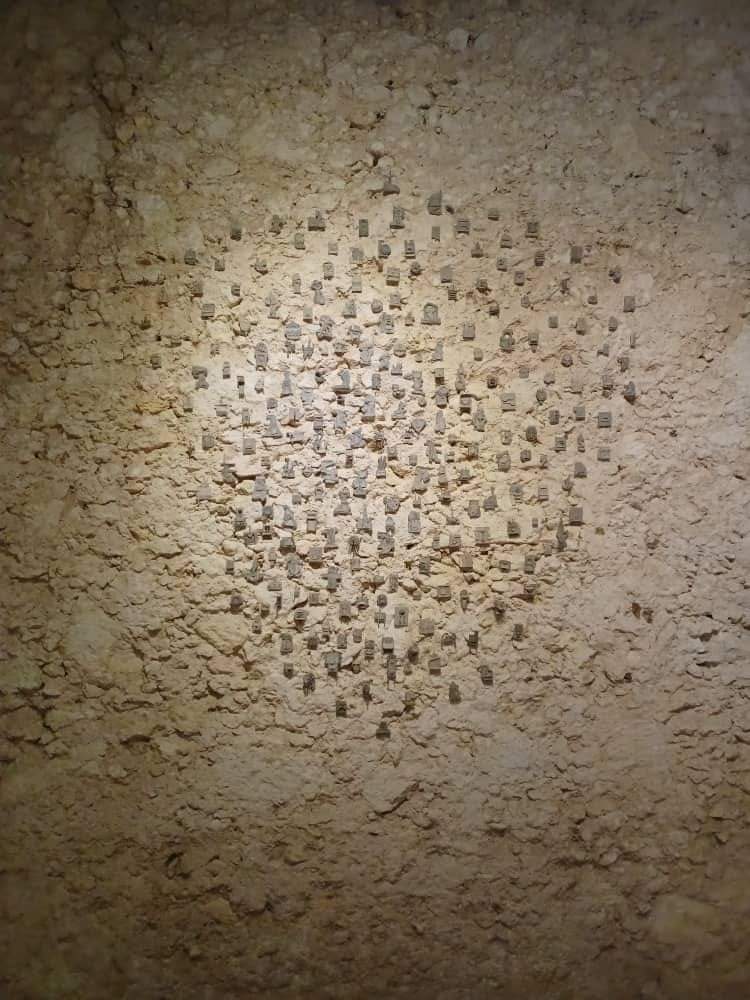 Las obras en esta exposición parecen más orgánicas en su construcción y pensamiento. Si bien en «Sacrum» se centró en la ceniza y la manifestación de lo sagrado en objetos, «Regresiones del yo» nos muestra ahora desde la misma ceniza la fragilidad del ser humano y su constante lucha por encontrar significado en un mundo que a menudo lo despoja de su esencia. Es una introspección a cómo nos vemos a nosotros mismos, a nuestra relación con lo divino y a cómo nos percibimos en el vasto universo. Del polvo venimos…dice la Biblia.
