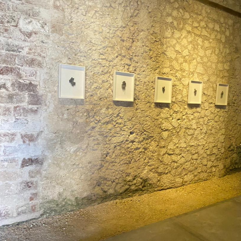 Hay un notable juego con las sombras y reflejos en esta exposición gracias a la magia del espacio de Corral Falso. Si bien la iluminación directa y las esencias aromáticas ofrecían una atmósfera mágica en «Sacrum», en «Regresiones del yo» hay un predominio de lo formal y el detalle estético. En varios aspectos me recuerda la obra de José Manuel Fors, evocando sensaciones de introspección y soledad. Las tonalidades negras y grises de las mezclas de cenizas, sugiere una búsqueda interna, un viaje al yo interno del artista, y por extensión, al de cada espectador.