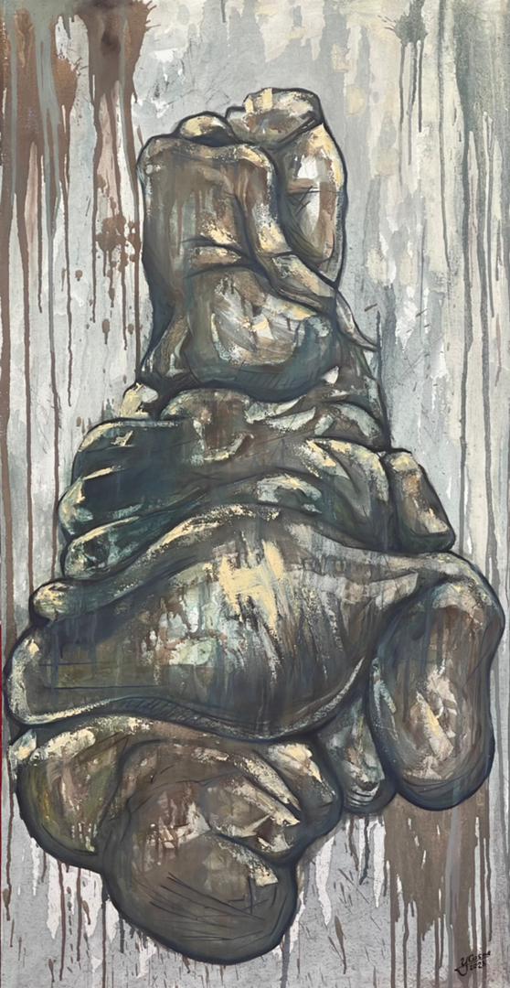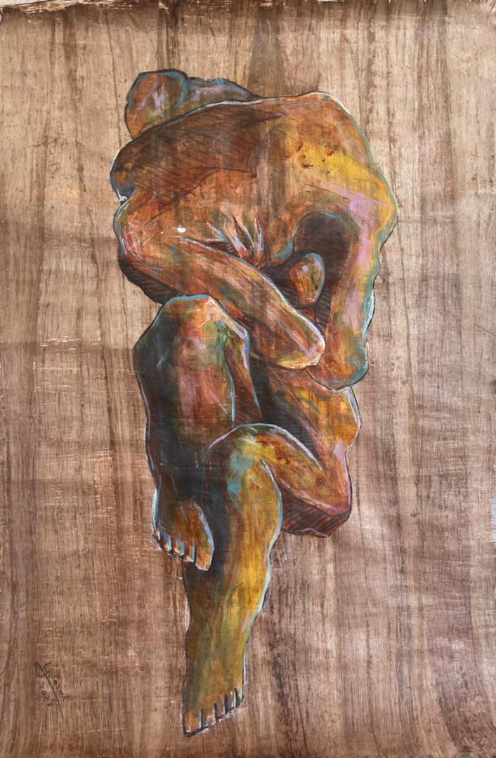 La deconstrucción del cuerpo humano, que el artista presenta en formas amorfas y a veces casi etéreas, emerge como un pilar poderoso y desafiante en esta exposición. Estas representaciones, lejos de ser meras abstracciones, parecen capturar la esencia volátil de la humanidad. Los cuerpos, en su gradual desvanecimiento y fusión, se metamorfosean en masas compactas, donde las líneas que definen a un individuo se vuelven borrosas y ambiguas. Esta amalgama de formas humanas, que pareciera estar en constante flujo y cambio, lanza un interrogante profundo acerca de la individualidad y la colectividad. ¿Dónde termina un ser y comienza otro? ¿Somos realmente entidades separadas o formamos parte de un todo más grande? Además, estas figuras evocan reflexiones sobre el misterio intrínseco de la existencia, esa insondable pregunta de por qué estamos aquí. Al mismo tiempo, la naturaleza efímera y transitoria de la vida humana se manifiesta en cada trazo, recordándonos nuestra vulnerabilidad y la inevitabilidad del paso del tiempo. La exposición, a través de esta potente deconstrucción, nos invita a confrontar y meditar sobre estas realidades universales.