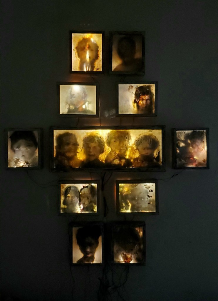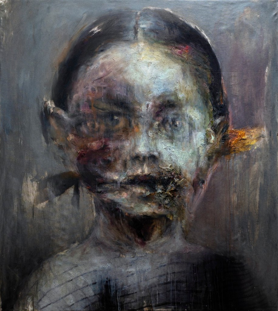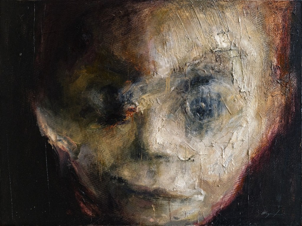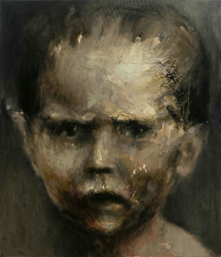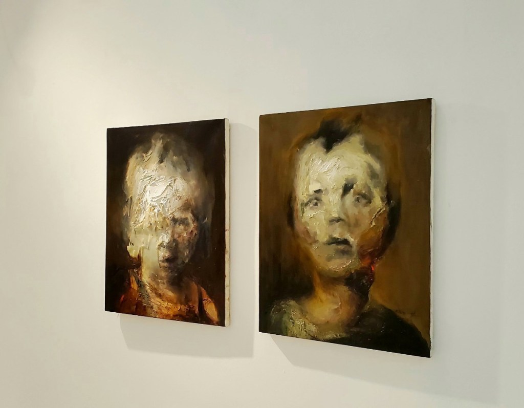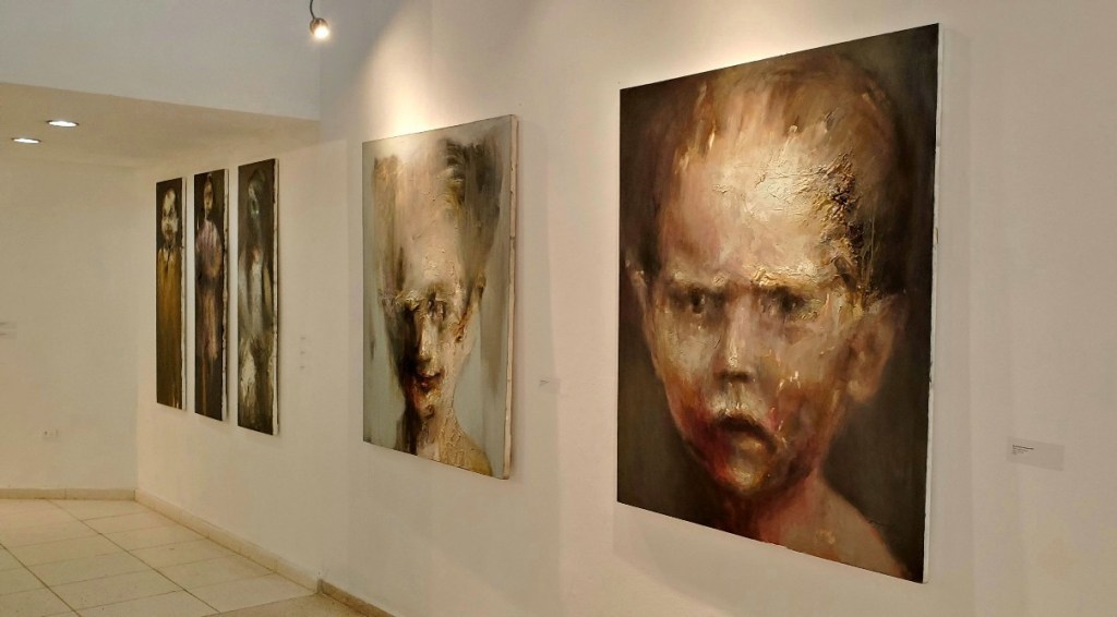 La habilidad, y en esto coincido con las palabras del catálogo de Hamlet Fernández, de este joven artistas para capturar la esencia de sus sujetos y explorar la profundidad de sus emociones se evidencia en la forma en que cada rostro parece comunicar una narrativa no dicha. Los ojos penetrantes, las expresiones faciales meticulosamente capturadas y las sutiles deformaciones en los retratos, se convierten en un medio para explorar la complejidad de la experiencia humana. La exposición se convierte en un espacio donde el arte y la emoción convergen, proporcionando una ventana hacia la introspección y la comprensión humana. Los retratos parecen abrir puertas hacia mundos internos, invitando a los espectadores a explorar los rincones más recónditos de la experiencia humana.