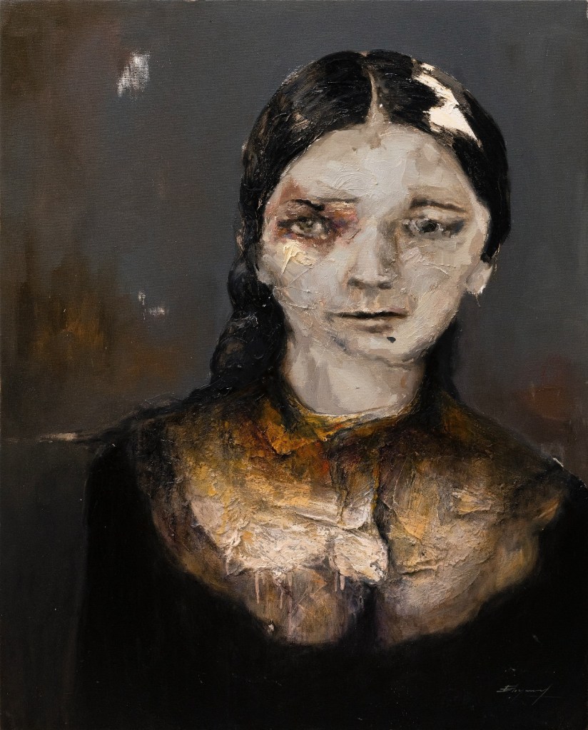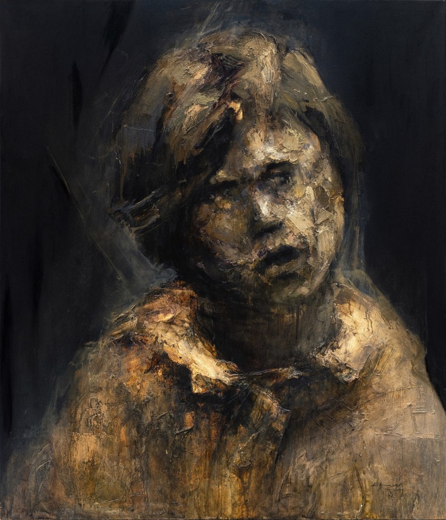 En Yasiel el uso del color, la textura y la forma, convergen para crear un lenguaje visual que comunica en un nivel profundamente emotivo. Cada pincelada, cada tono y cada forma, se amalgaman en una sinfonía visual que habla directamente al corazón de los espectadores. Los tonos sombríos intercalados con pinceladas audaces crean una atmósfera que evoca una gama de emociones, desde la melancolía hasta la esperanza. Cada retrato parece tener una vida propia, una historia única que se despliega ante los ojos del espectador, invitando a una reflexión profunda sobre la interconexión de nuestras propias experiencias con las de los retratados.