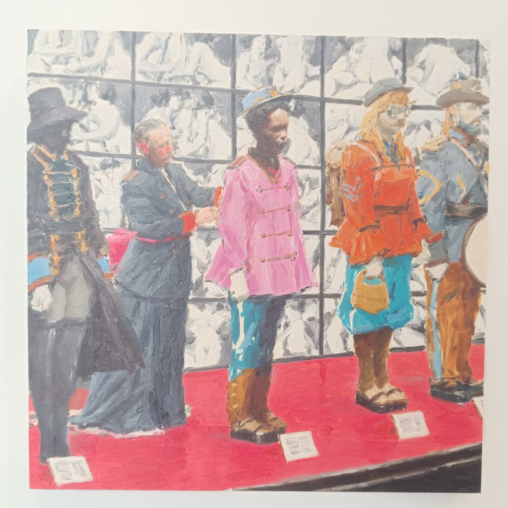 El enfoque de Cabrera, más allá de ser una simple representación artística, es en sí mismo un comentario crítico y reflexivo sobre la historia y la narrativa. A través de sus obras, no busca simplemente reproducir eventos históricos con precisión milimétrica. En lugar de eso, se embarca en un proceso de reinterpretación y re-imaginación, permitiendo que la historia se fusione con la ficción y la personalidad. A menudo, esto se traduce en una sutil, pero poderosa burla hacia los rituales y ceremonias de la Historia, poniendo en tela de juicio las narrativas establecidas y desafiando las percepciones convencionales. Cabrera juega con la Historia, llevando al espectador a cuestionar y reflexionar sobre la naturaleza de la verdad histórica y la manera en que las historias son contadas y recordadas, especialmente en contextos donde la historia puede ser un tema delicado y polémicamente manejado por regímenes políticos.