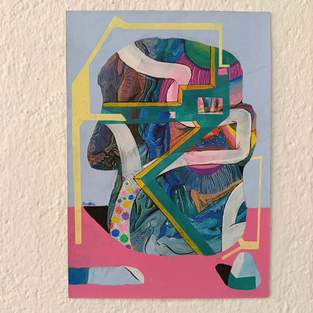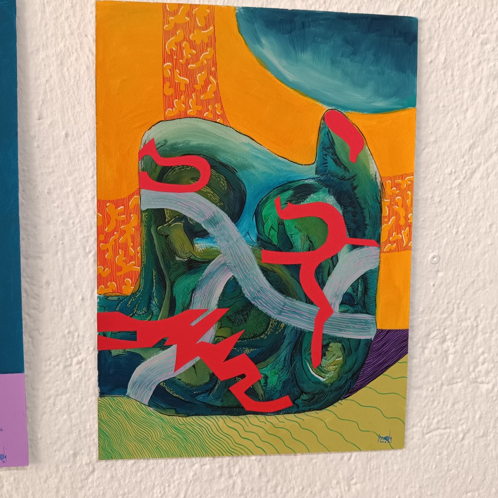 En particular, me llamó la atención la obra de Brady Izquierdo. Aunque es ampliamente reconocido por su enfoque en la caricatura tradicional, en esta ocasión nos presenta algo completamente diferente. Alejándose de la sátira y el humor que suele caracterizar su trabajo, Izquierdo nos sumerge en una propuesta abstracta y conceptual. Su obra en «Aquí» reta las expectativas, invitando al espectador a romper con sus propias preconcepciones y embarcarse en un viaje introspectivo a través del arte. Es una clara muestra de la evolución y adaptabilidad de un artista, y de cómo el entorno y la colaboración pueden influir y enriquecer la creatividad.