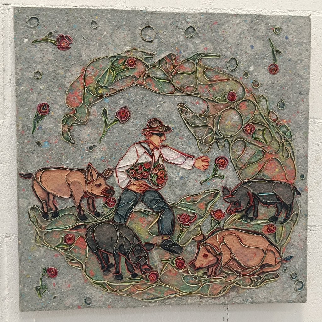 Visito el open studio del emblemático artista cubano Michel Pérez, más conocido en el mundo del arte como “El Pollo”, en El Escorial. Inmediatamente me veo envuelto en un ambiente eléctrico, palpitante de creatividad y autenticidad. El espacio escogido, se convirtió en el marco perfecto para la amalgama de expresiones artísticas de esta notable generación de artistas cubanos.