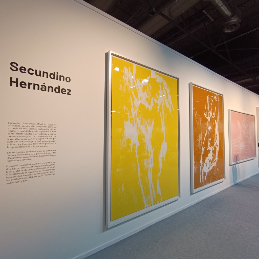 Estampa 2023 tiene como artista invitado a Secundino Hernández, quien presenta una serie de pinturas estarcidas de gran formato. Hernández, nacido en Madrid en 1975, es considerado uno de los artistas españoles más internacionales de su generación.