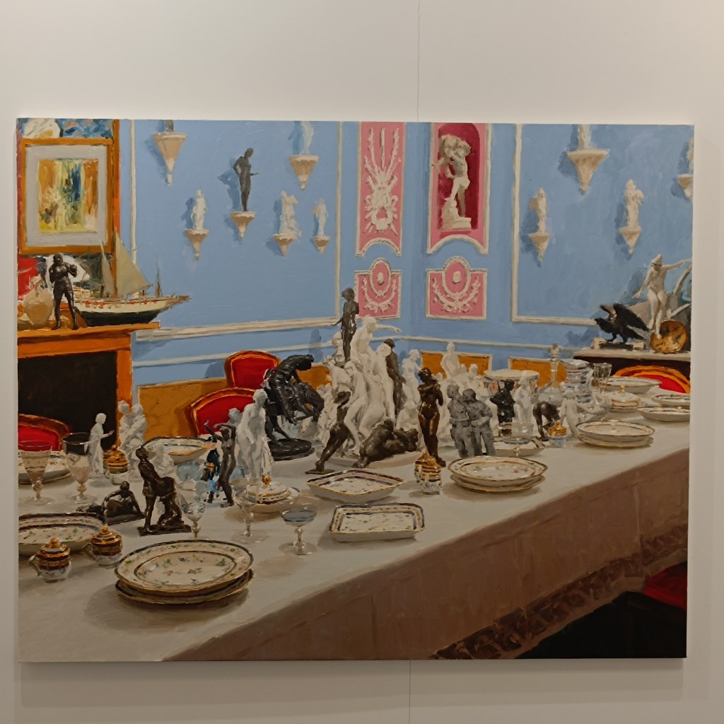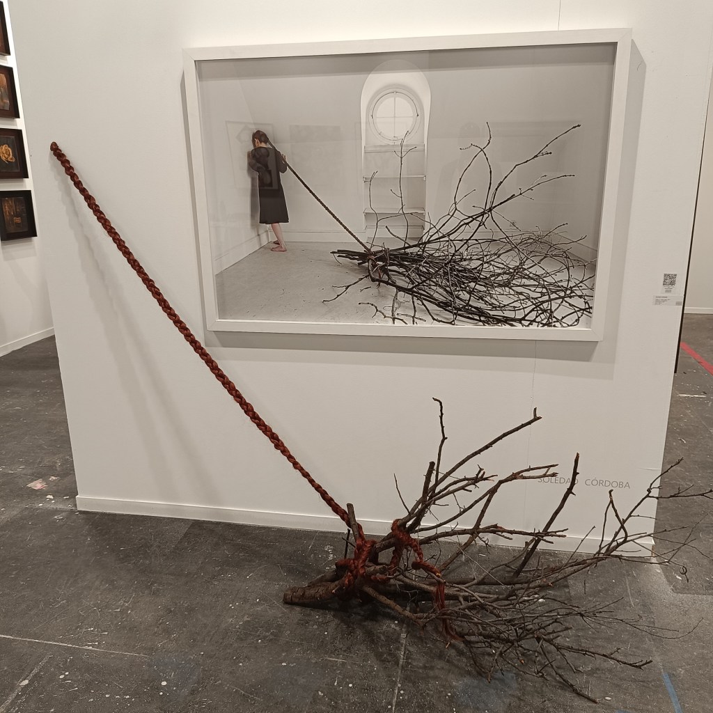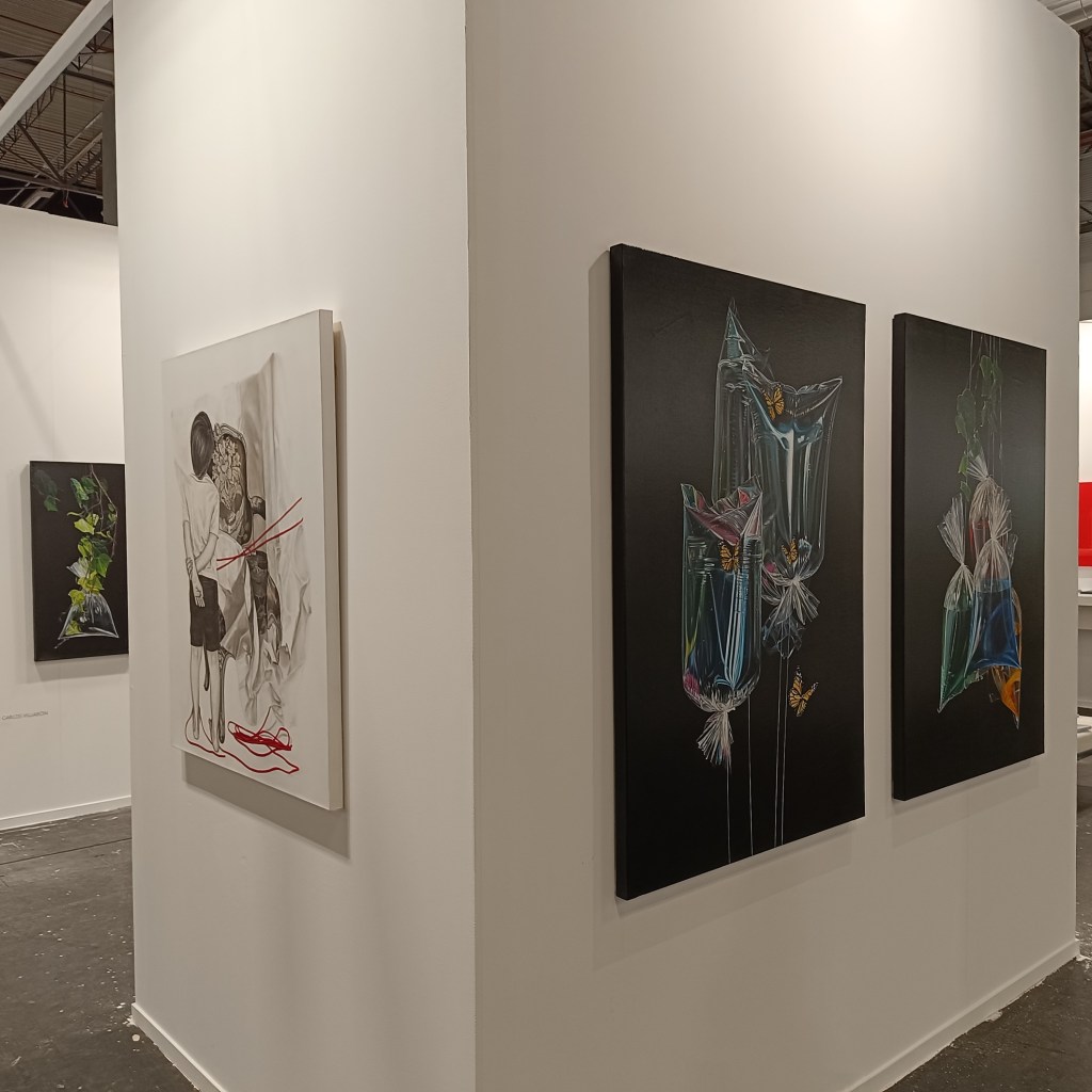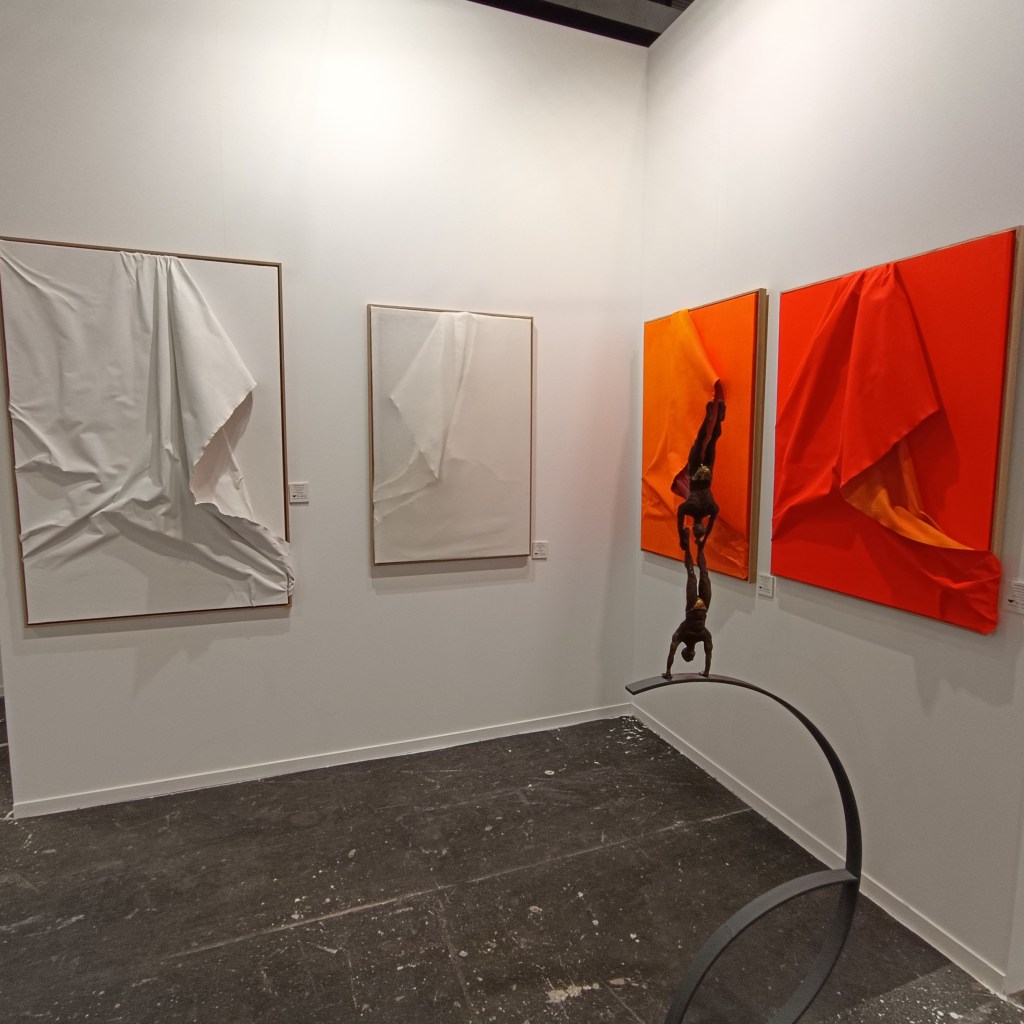 En lo que respecta al arte cubano, su representación ha sido puntual en algunas galerías. Sobresale la alianza estratégica entre María Porto Gallery y David Bardia Art Gallery, que en su pabellón común exhibieron notables obras de Lorena Gutiérrez, pertenecientes a su serie «Soga de la seda», así como una pieza de gran envergadura de Daniel Alejandro Barrios. Lorena en su trabajo artístico se ha distinguido por una polifonía estética y una poética elusiva, manifestadas en múltiples medios como la instalación, el performance y la pintura. Contrariamente, Barrios representa la intransigencia hacia la praxis artística, habiendo trasladado su fervor pictórico desde Cuba a Madrid a una edad temprana, y forjando un camino que desafía las rutas académicas convencionales en Cuba.