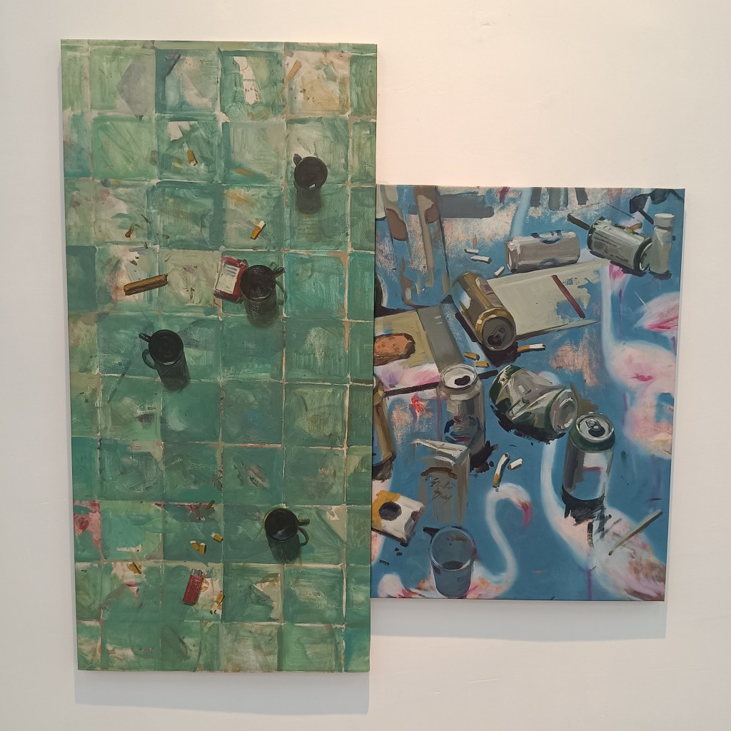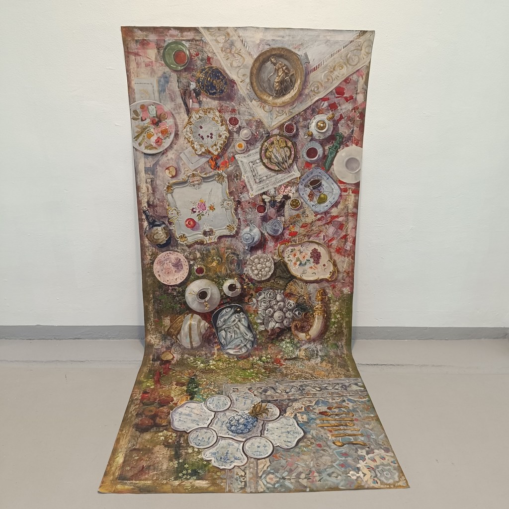 Además, su enfoque en temas como la naturaleza muerta y la representación de lo efímero y lo residual, dialoga con preocupaciones contemporáneas sobre la sostenibilidad, el consumismo y la transitoriedad de la existencia. En la era de la hiperproducción y el consumo desenfrenado, su obra invita a la reflexión sobre lo que descartamos y sobre la naturaleza cíclica de la vida y el arte. La utilización de una perspectiva cenital y la desconstrucción del espacio pictórico tradicional reflejan otra dimensión importante del arte contemporáneo: su ruptura con las perspectivas lineales y jerárquicas. Al igual que muchos artistas contemporáneos, Héctor desafía las normas establecidas del espacio y la forma, buscando nuevas maneras de interactuar con el espectador y de conceptualizar el espacio artístico.
