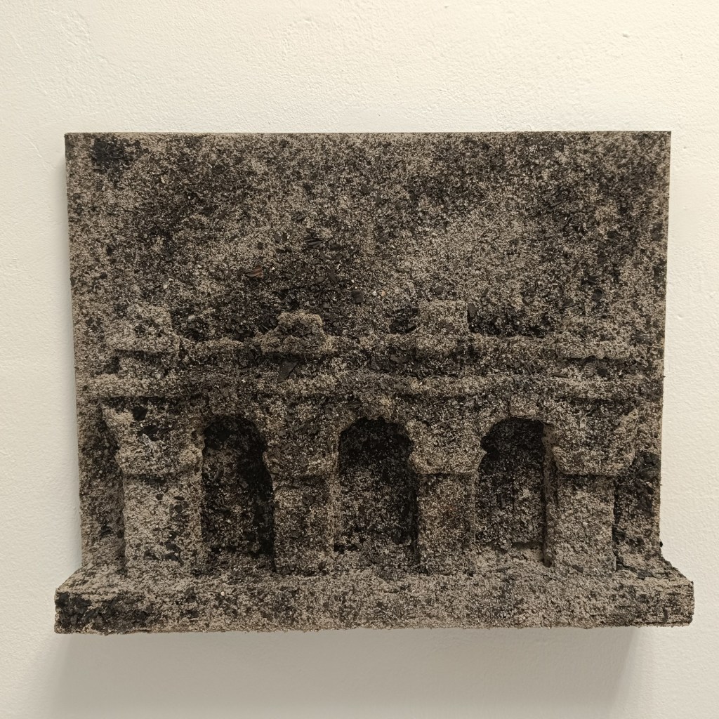 «Apariciones discretas», la reciente muestra del joven artista cubano Alejandro Co, se despliega en el espacio madrileño del proyecto Navel no como un eco de su predecesora «A la sombra de un ciprés» (Centro de Desarrollo de las Artes Visuales, 2022), sino como una profunda reverberación que profundiza en la ceniza como sustancia y símbolo. Aquí, la ceniza no solo evoca la memoria dolorida de los caídos en batalla, sino que también se convierte en la carne de esas estructuras arquitectónicas que, en su lucha contra el olvido, se deshacen bajo el peso ineluctable del tiempo. La muestra actual transciende la mera evocación histórica, tejiendo un tapiz más expansivo sobre la transitoriedad de nuestra propia existencia.