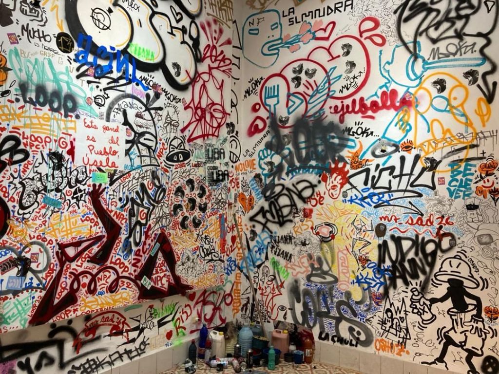 Las imágenes de la exposición revelan una densa amalgama de símbolos, colores y textos que se superponen en una cacofonía visual, reflejando la esencia caótica y efímera del graffiti urbano. La obra que representa una habitación grafiteada por completo destaca como un esfuerzo por recrear la experiencia inmersiva del arte en el espacio público. La estética saturada y la espontaneidad del trazo invitan a reflexionar sobre la naturaleza efímera del graffiti, que en este nuevo contexto se estanca, perdiendo su carácter temporal y su diálogo con la ciudad.