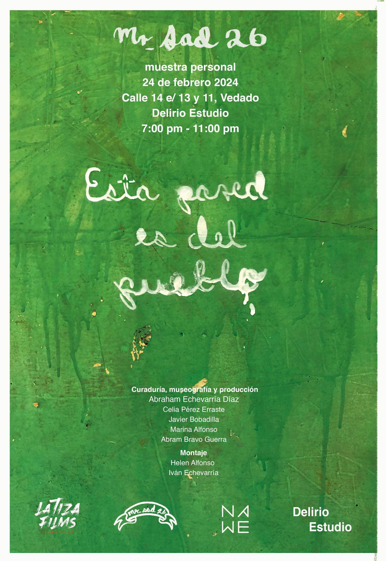 Tomo esto de pie forzado para revisar la reciente exposición «Esta pared es del pueblo» en Galería Deliro Estudio, curada por un grupo de jóvenes (cinco para ser exacto, algo que me llamó la atención) donde presentaron obras del artista Abraham Echevarría c/p Mr_Sad 26. De facto la muestra se sitúa en una encrucijada conceptual que desafía la comprensión tradicional del graffiti. Con la galería transformada en un espacio que evoca la rebeldía y el desorden visual característicos del arte callejero, las obras buscan mantener su diálogo crítico y su energía subversiva. Sin embargo, al trasladar el graffiti a un espacio cerrado y mercantilizado, la exposición enfrenta el riesgo de atenuar la potencia disruptiva que define al graffiti.