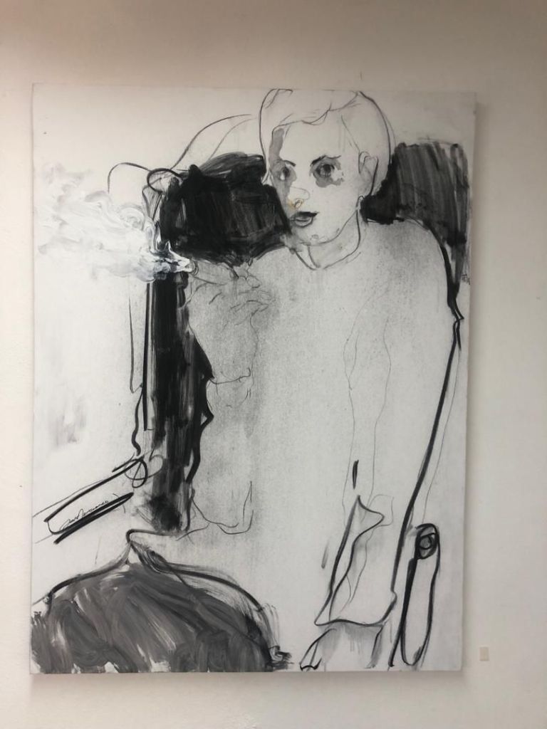 La exposición «La delgada línea negra» de Adrián Socorro es un testimonio de la complejidad emocional y el desgarro existencial que caracteriza el arte contemporáneo. Al adentrarnos en esta colección, nos enfrentamos a un universo donde el dibujo, más que un mero instrumento de representación, se convierte en un vehículo de intensa carga emotiva. Los trazos ásperos, a menudo frenéticos, junto con las vastas manchas de gris, configuran una narrativa visual donde cada figura parece suspenderse en un limbo de desolación y conflicto interno.