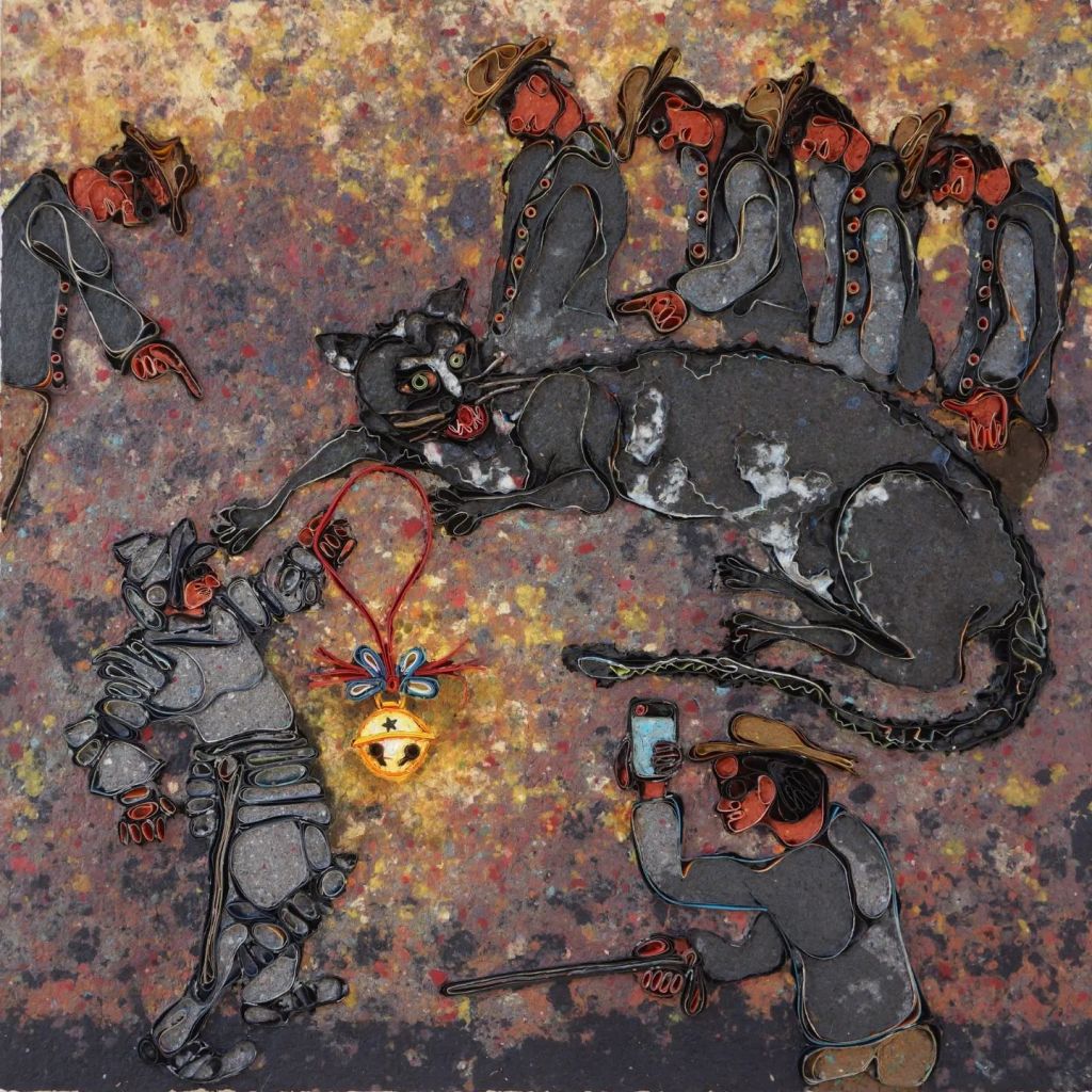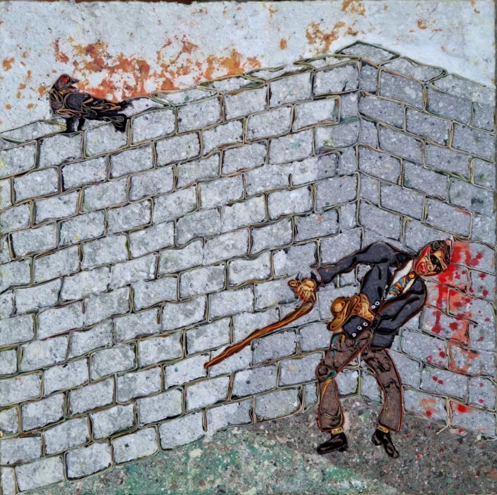 De la Cal: «Equilibrada», esa palabra me suena raro aquí. ¿Cómo va a ser equilibrado si Yunior anda por surcos que ya otros araron, mientras Fernando está tumbando la cerca? Desde aquel «Work in Paper» de 2014 en la Galería Servando, hasta la tremenda obra de «El muro de los lamentos» entre 2015 y 2019, que se alza como palma de 3 x 5 metros, Fernando ha estado echándole el corazón a este asunto. No es solo la maña con que lo hace, sino que está hablando duro y claro sobre lo que vivimos. Eso es lo que yo quiero ver que se aplaude.