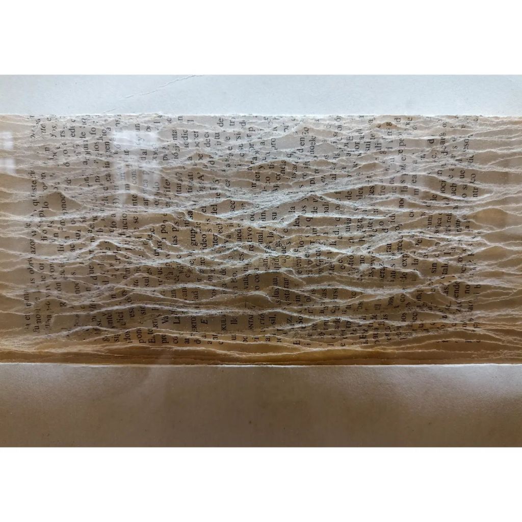 De la Cal: Mira, te lo pongo fácil. Desde el 2010, Fernando se ha dado a la tarea de machacar papeles que pesan lo suyo: desde documentos llenos de ciencia, cultura, y política, hasta uniformes de soldado, revistas de arte cubano de todos los tiempos, papeles viejos de oficinas del gobierno, periódicos que hablan de la zafra, billetes del país, y hasta una copia de la constitución del 76, todo para darle una vuelta de tuerca a eso que llamamos arte. ¿Y Yunior La Rosa? ¿Está en lo mismo? Fernando no se limita a cambiar el papel de forma; él cambia cómo lo vemos todo. Toma por caso su obra “Sin título” de 2023, hecha con el Atlas Nacional de Cuba. ¿Tú crees que Yunior puede tocar así, fino, lo quebradizo de nuestra identidad y nuestra cultura?