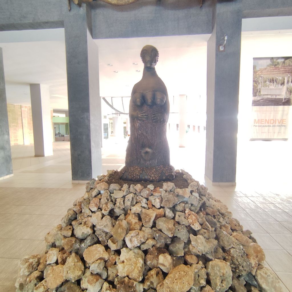 En Pan con guayaba…, las piezas relacionadas con la religiosidad afrocubana y la mitología yoruba adquieren un lugar central. Mendive utiliza los mitos, símbolos y rituales afrocubanos no como elementos meramente estéticos, sino como actos políticos que resignifican el imaginario cultural cubano. Al presentar estas expresiones como experiencias vivas y contemporáneas, la exposición pone en evidencia la fuerza de lo afrocubano como componente esencial de la identidad cubana. En este sentido, la muestra se convierte en un espacio decolonizado donde el arte afrocubano es protagonista y se legitima desde la pluralidad de soportes, técnicas y discursos.