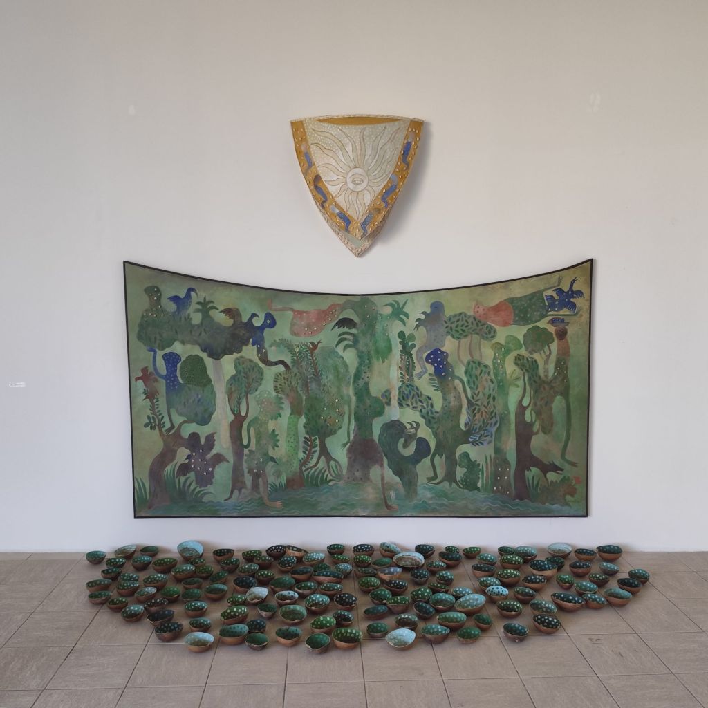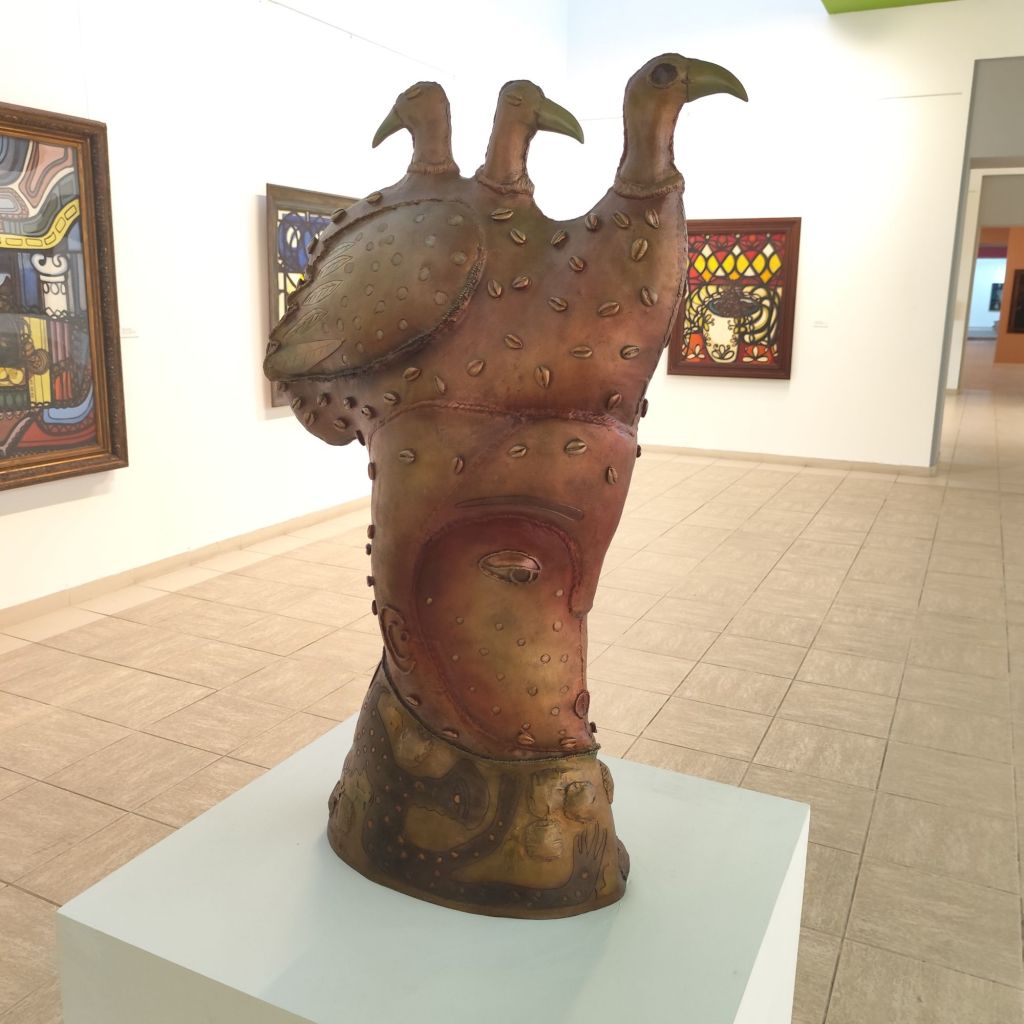 Mendive aborda una multiplicidad de lenguajes y soportes en la exposición, desde pintura, escultura e instalación, hasta el video y la performance. Esta diversidad no es solo una exploración técnica, sino una forma de conectar la espiritualidad y la religiosidad yoruba con las experiencias contemporáneas. La manera en que la exposición articula piezas de distintas épocas –desde las obras tempranas de su etapa académica, hasta las que indagan sobre el hombre y la naturaleza desde una mirada universal– demuestra cómo Mendive ha construido un corpus visual que atraviesa y desafía las nociones coloniales de representación.