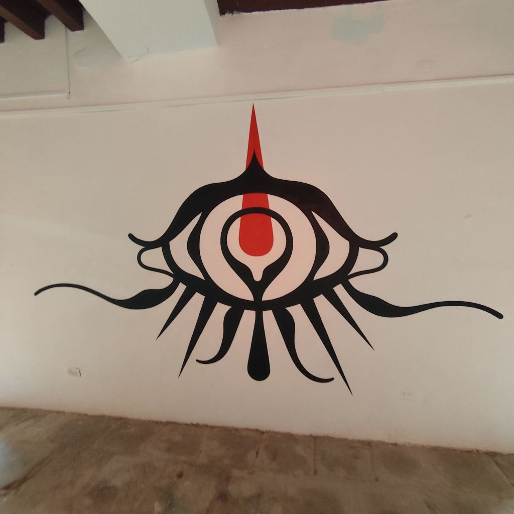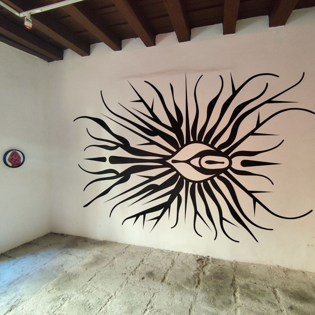 El mural central, con su ojo rodeado de líneas que semejan raíces o venas, se convierte en una suerte de eje simbólico. La forma del ojo no solo representa la capacidad de mirar y ser mirado, sino también la experiencia de «ver» y «ser visto» desde un lugar de vulnerabilidad y fortaleza. Aquí, Lauren recurre al lenguaje de lo orgánico, evocando la fragilidad y resistencia del cuerpo femenino ante las realidades de la violencia de género. La obra hace eco de los planteamientos teóricos de Julia Kristeva sobre la abyección, donde el cuerpo femenino se sitúa en los márgenes, en ese lugar que la sociedad prefiere no ver. Sin embargo, la mirada que emerge de estas piezas no es pasiva; es una denuncia, una confrontación que desafía al espectador a habitar esos espacios incómodos y cuestionar sus propias percepciones.