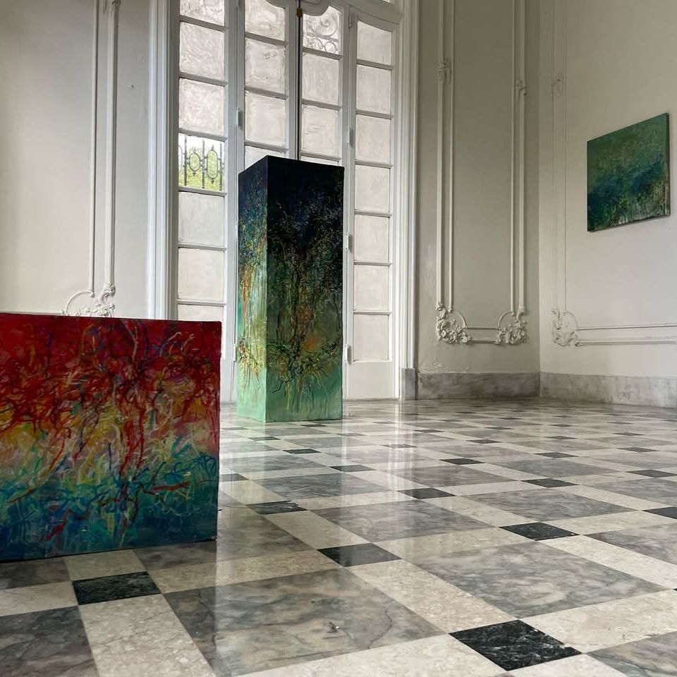 Enrique Ángel Cabrera, por su parte, ofrece un contrapunto contemporáneo a la obra de Servando, llevando su práctica más allá del lienzo para involucrar elementos escultóricos y materiales industriales. Sus piezas, que parecen una extensión material de lo pictórico, coquetean con la tridimensionalidad, pero no alcanzan a dialogar con el paisaje o la arquitectura de manera que las inserte en un verdadero campo expandido. Aquí, su obra se aproxima más a una pintura expandida, en la que el soporte y los materiales tradicionales se redefinen, pero no trascienden hacia las categorías híbridas de Krauss, como el land art o las intervenciones arquitectónicas. Sus instalaciones parecen ancladas en el gesto pictórico, dejando de lado el diálogo con el espacio que podría haber llevado su obra a otro nivel conceptual.
