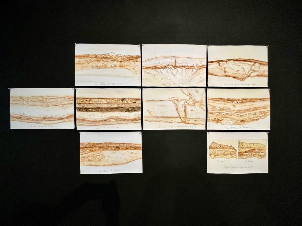 Por su parte, la serie Arqueología del color establece un diálogo con la historia de la pintura desde una aproximación casi forense. Aquí, toma como punto de partida estudios basados en fotografías estratigráficas de obras de Goya, Vermeer, Greco, Velázquez, Murillo y Picasso, pero en lugar de limitarse a un ejercicio de reconstrucción técnica, los reinterpreta desde una perspectiva materialista. Sus pinturas al óleo sobre tela, sus estudios en lápiz-acuarela y sus dibujos sobre cartulina no buscan imitar la apariencia de los maestros antiguos, sino desmontar los procesos que las hicieron posibles. Así, la pintura deja de ser una imagen para convertirse en un fenómeno físico, en una serie de capas superpuestas cuya lógica responde tanto a la historia del arte como a la naturaleza misma de los materiales utilizados.