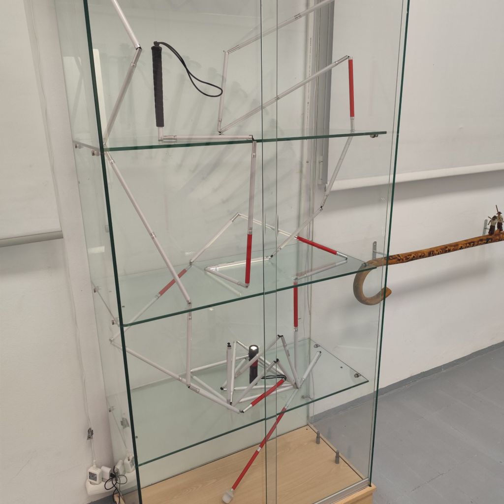En la vitrina rota, los bastones de ciegos han perdido su función. Ya no orientan, solo crean un caos de líneas truncadas. ¿Qué significa estar ciego cuando la ceguera es una estrategia de supervivencia? ¿Acaso no es más fácil moverse sin ver, sin preguntar, sin esperar respuestas? Aquí la ceguera no es un accidente, es una pedagogía. Se aprende a ignorar lo evidente, a olvidar lo necesario, a seguir adelante sin mirar el desastre que se acumula en los bordes.