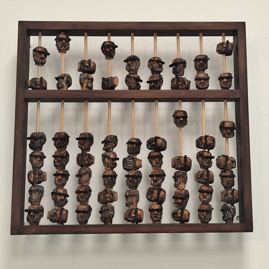 El ábaco. ¿Es una herramienta o una sentencia? ¿Acaso la contabilidad del poder se reduce a eso: sumar, restar, mover cuerpos de un lado a otro hasta hacerlos encajar en la ecuación que justifica todo? La repetición como doctrina. El conteo como forma de borrado. Aquí no hay nombres, solo unidades de cálculo, cabezas miniaturizadas que avanzan dentro de un marco fijo. ¿Quién decide quién sube y quién baja? ¿Quién fija los límites del movimiento? ¿Hasta dónde puede desplazarse un hombre antes de comprender que solo se está moviendo en círculos?