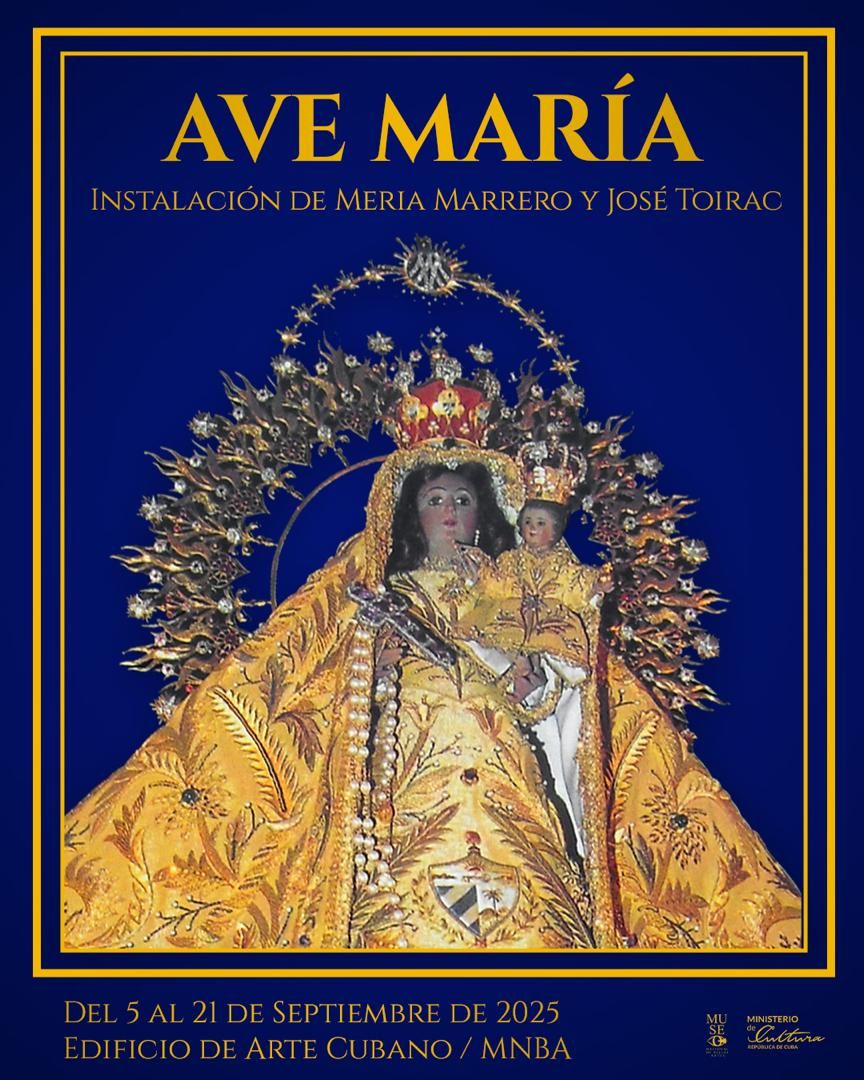¿De qué habla Ave María? No de religión, al menos no en sentido estricto. Habla de la Caridad del Cobre como símbolo nacional, como figura mestiza que en 1916 fue declarada Patrona de Cuba por Benedicto XV, coronada en 1936 por el arzobispo Zurrieta, y otra vez en 1998 por Juan Pablo II, que le colocó una rosa y un rosario de oro y perlas. Habla de la fe como cemento social en un país donde la política -de un lado o del otro- ha querido expropiar hasta los símbolos. Habla del mar, de ese azul que sostiene la instalación y que inevitablemente recuerda balsas, huidas, naufragios, pero también regresos y esperanzas. Habla de un país que solo se reconoce en la pluralidad, nunca en el uno.