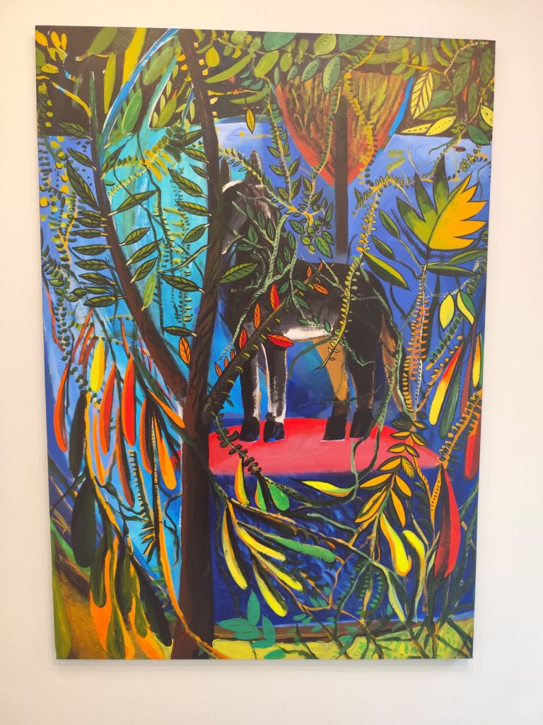 La pintura, por su parte, se presenta como espacio de resistencia a la literalidad de la imagen. El caballo devorado por la selva, el perro que ladra sin respuesta, el políptico de fragmentos inconexos: todos funcionan como contrapuntos al discurso monumental, proponiendo en su lugar un registro de lo íntimo, de lo residual, de lo que no encaja. En estos gestos hay una voluntad de desmontar la visualidad dominante para plantear otra narrativa: menos coherente, más ambigua, pero profundamente reveladora de las tensiones del presente.