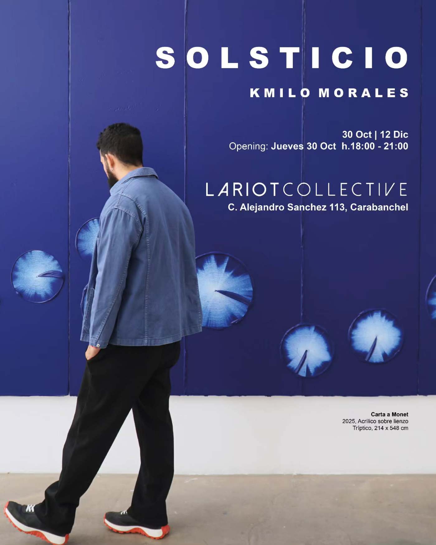Eso, en los tiempos que corren —tan llenos de imágenes ligeras, tan saturados de efectos sin causa— es casi un gesto político. Kmilo Morales no especula con el azul: lo reivindica. Lo enfrenta. Lo desarma. Lo convierte en un umbral donde la percepción se resquebraja y se recompone. Si el solsticio marca el punto extremo del ciclo solar, Kmilo parece decirnos que la pintura aún tiene bordes por alcanzar, límites que rozar, precipicios que inaugurar.