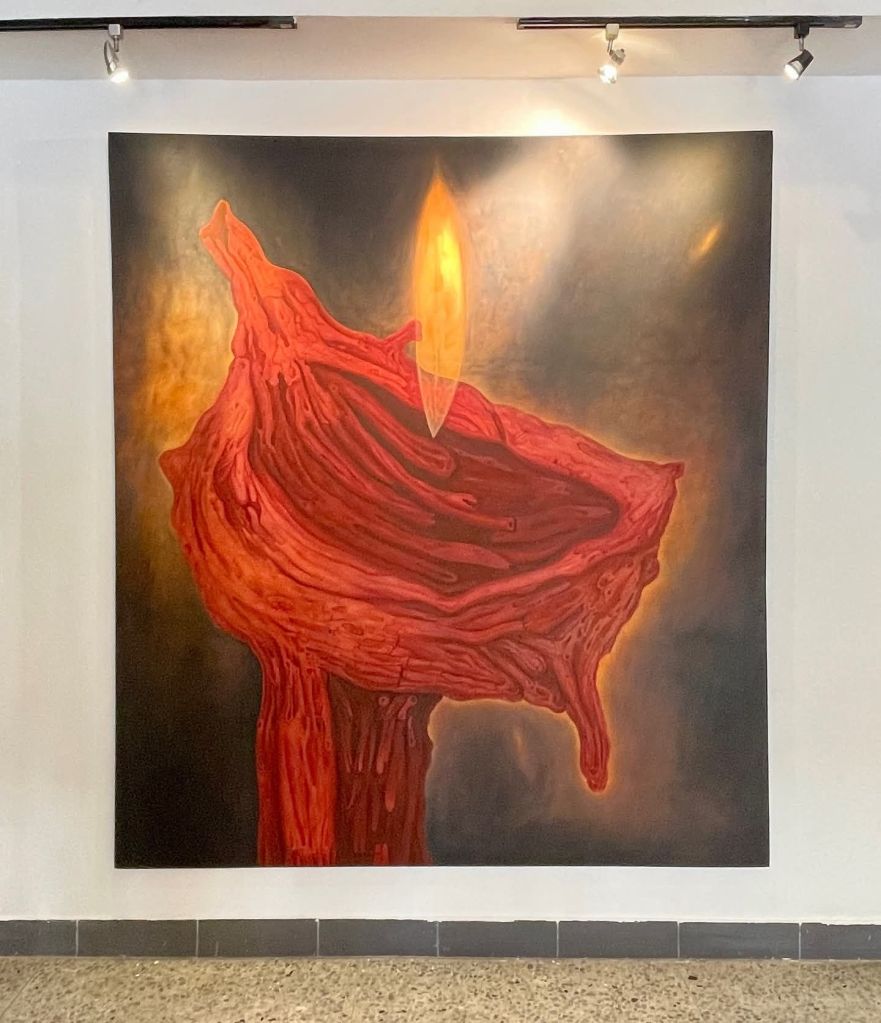 Mi lectura, entonces, es esta. Creatura no representa una ruptura con el Dayron que ya conocíamos. Representa una intensificación. Representa un avance. Representa la entrada en un momento de mayor madurez, porque la continuidad ya no se sostiene solo por la repetición de un imaginario, sino por la capacidad de renovarlo desde dentro. Eso es lo que importa en esta muestra. No la hipérbole. No la consagración prematura. Importa el hecho de que Dayron ha dado un paso más y que ese paso se nota en la pintura misma.