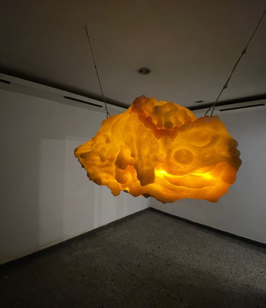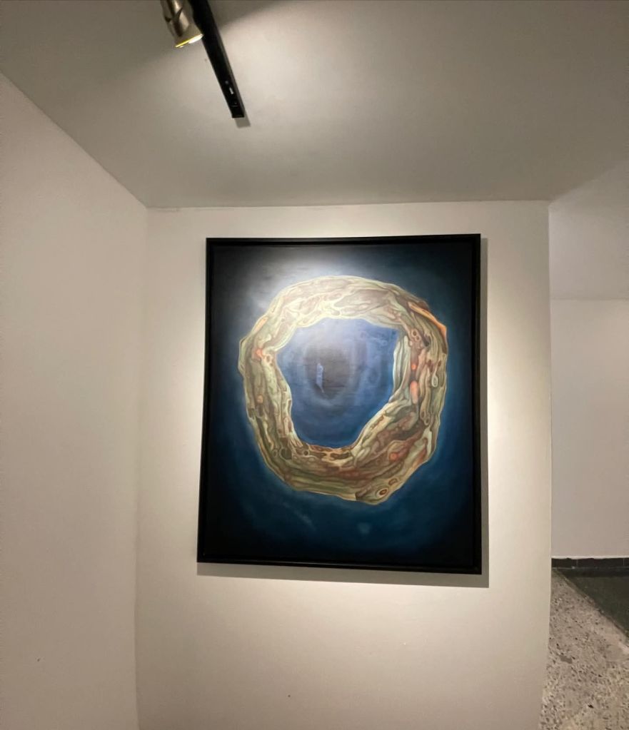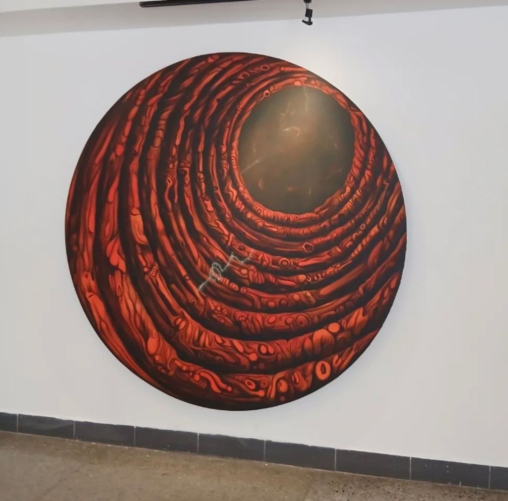 Ahí radica una parte sustancial de su validez. Dayron ya tiene mundo. Tiene un repertorio formal reconocible. Tiene una iconografía que no depende del capricho ni del efecto fácil. Sus anillos, cavidades, membranas, masas encendidas y núcleos oscuros no aparecen como adornos. Funcionan como piezas de una sintaxis. Esa sintaxis le da unidad a la exposición y le da espesor a la trayectoria. Uno puede entrar a la muestra por cualquiera de sus piezas y reconocer de inmediato una misma respiración visual. Eso no es poco. En un contexto donde tantos artistas cambian de piel con rapidez para parecer actuales, Dayron ha preferido profundizar en sus propias obsesiones. Esa fidelidad le ha dado peso.
