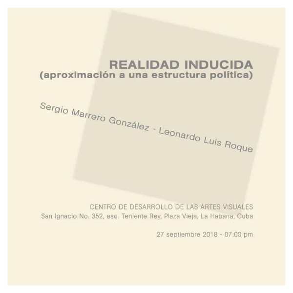 Exposición "Realidad inducida (aproximación a una estructura política)" Sergio Marrero / Leonardo Luis Roque 27.09.2018 Centro de Desarrollo de las Artes Visuales No se pueden hacer grandes cosas sin grandes amigos, dijo Martí y es tal vez la guía de esta exposición… ambos artistas Sergio Marrero González y Leonardo Luis Roque buscan esos puntos de... Leer más →