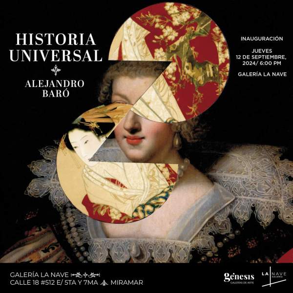 Exposición "Historia Universal"Alejandro Baró 12.09.2024Galería Las NaveEn un deliberado acto de desmontaje crítico frente a las visualidades occidentales, Alejandro Baró quiere (re)contarnos la Historia Universal desde el arte. Es esta propuesta, desde el collage como recurso conceptual, la forma que encuentra este artista para enfrentar la hegemonía simbólica y discursiva del canon artístico europeo. Las... Leer más →