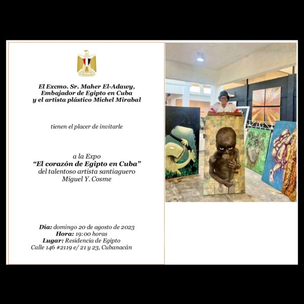 Exposición "El corazón de Egipto en Cuba"Miguel Y. Cosme20.08.2023Residencia del embajador de Egipto En el corazón de un pedazo de Egipto en Cuba, iluminado sutilmente, donde la esencia mística del Nilo, con sus historias milenarias y sus aguas cargadas de vida, se entrelaza armoniosamente con el vibrante y apasionado espíritu de la isla caribeña, emerge... Leer más →